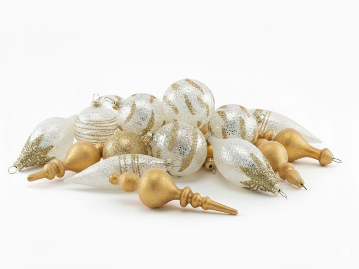 Fünfundzwanzig handgefertigte Glaskugeln für den Weihnachtsbaum. Dieses mehrteilige Baumschmuck-Set vereint kunstvolle Handarbeit mit festlicher Raffinesse. Die fünfundzwanzig sorgfältig gefertigten Christbaumkugeln zeichnen sich mit ihrem individuellen Design aus und sind zudem mit stabilen Hütchen ergänzt. Die luxuriöse Farbkomposition, die unterschiedliche Formschönheit sowie die Antik-Optik- und Glitzer-Oberflächen ermöglichen einzigartige Kompositionen und bringen zusammen Wärme, Tiefe und einen glamourösen Effekt in Ihr Weihnachtsarrangement.