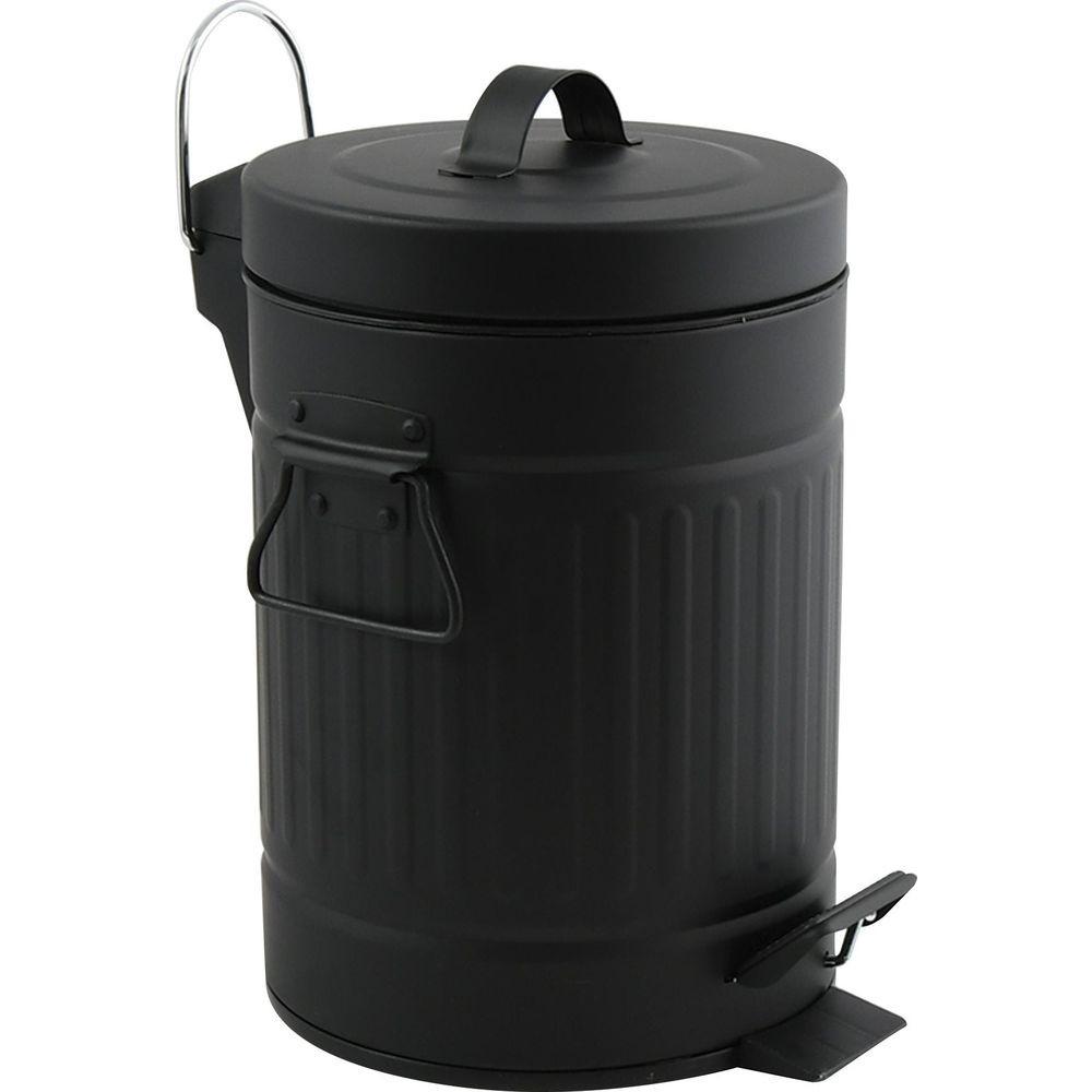 Fassungsvermögen: 3 l, Höhe: 26.5 cm, Anzahl Behälter: 1, Detailfarbe: Schwarz, Form: Rund, Material: StahlRobuster Kosmetikeimer mit PedalantriebMit praktischem Deckel und Tragegriffen3 l FassungsvermögenAus Stahl gefertigtIn der Farbe SchwarzAbmessungen: 17 x 26.5 cm