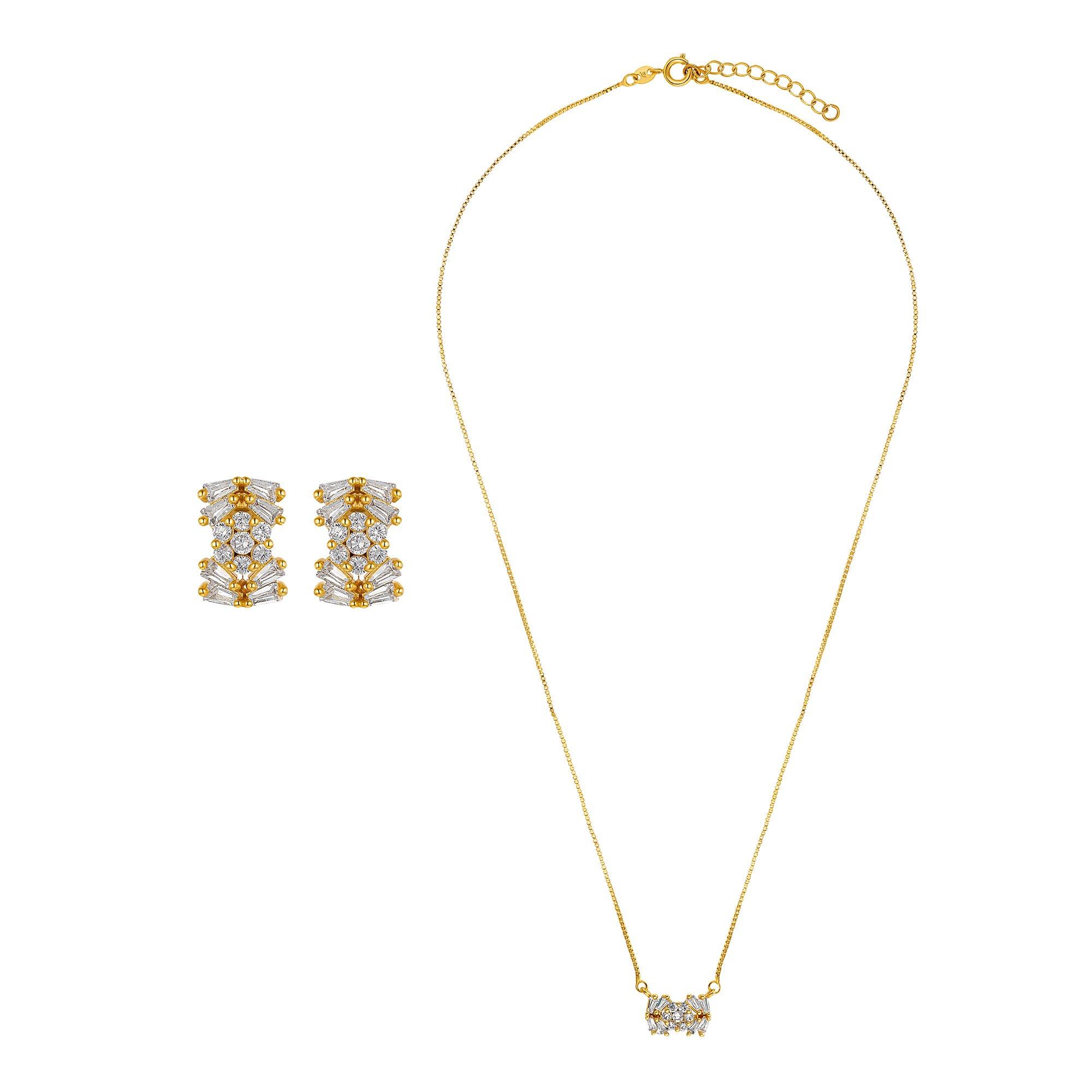 Als Perfektionistin fällt es dir morgens manchmal schwer, das passende Schmuckensemble zusammenzustellen. Wir helfen dir und haben in diesem Set bereits Ohrschmuck und Kette miteinander kombiniert! Die aufeinander abgestimmten Schmuckstücke setzen dich glamourös in Szene. Die unterschiedlich geschliffenen Steine sorgen für Spannung, die filigrane Venezianerkette verleiht dem prachtvollen Anhänger eine Prise Leichtigkeit. Gemacht für glamouröse Auftritte oder einfach mehr Glamour im Alltag! Dieses funkelnde Schmuckset aus Ohrringen und Halskette ist ein tolles Geschenk. Die Schmuckverpackung gibt es kostenlos dazu.