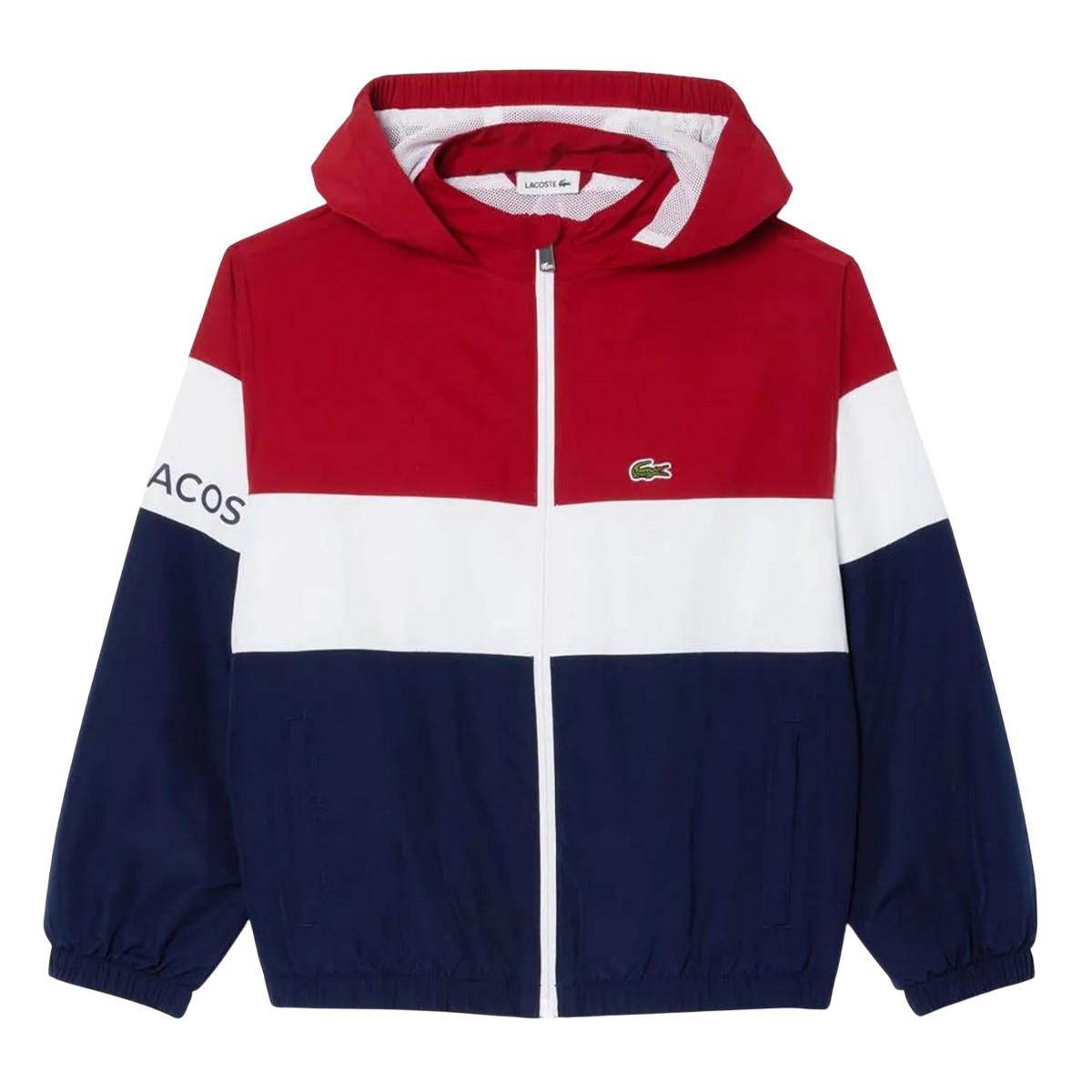 Recyceltes Polyester. Futterstoff: Kontrast, Netzmaterial. Design: Blockfarben, Logo. Gewebetechnik: wasserabweisend. Kinnschutz. Bündchen: Elastisch. Mit Kapuze, Stehkragen. Langärmlig. Kapuzenmerkmale: Mit Mesh gefüttert, Aufnähen. Passform: Klassisch. Taschenart: Zwei Seitentaschen, Reißverschluss. Durchgehender Reißverschluss. 110: 58,42 cm. 128: 66 cm.