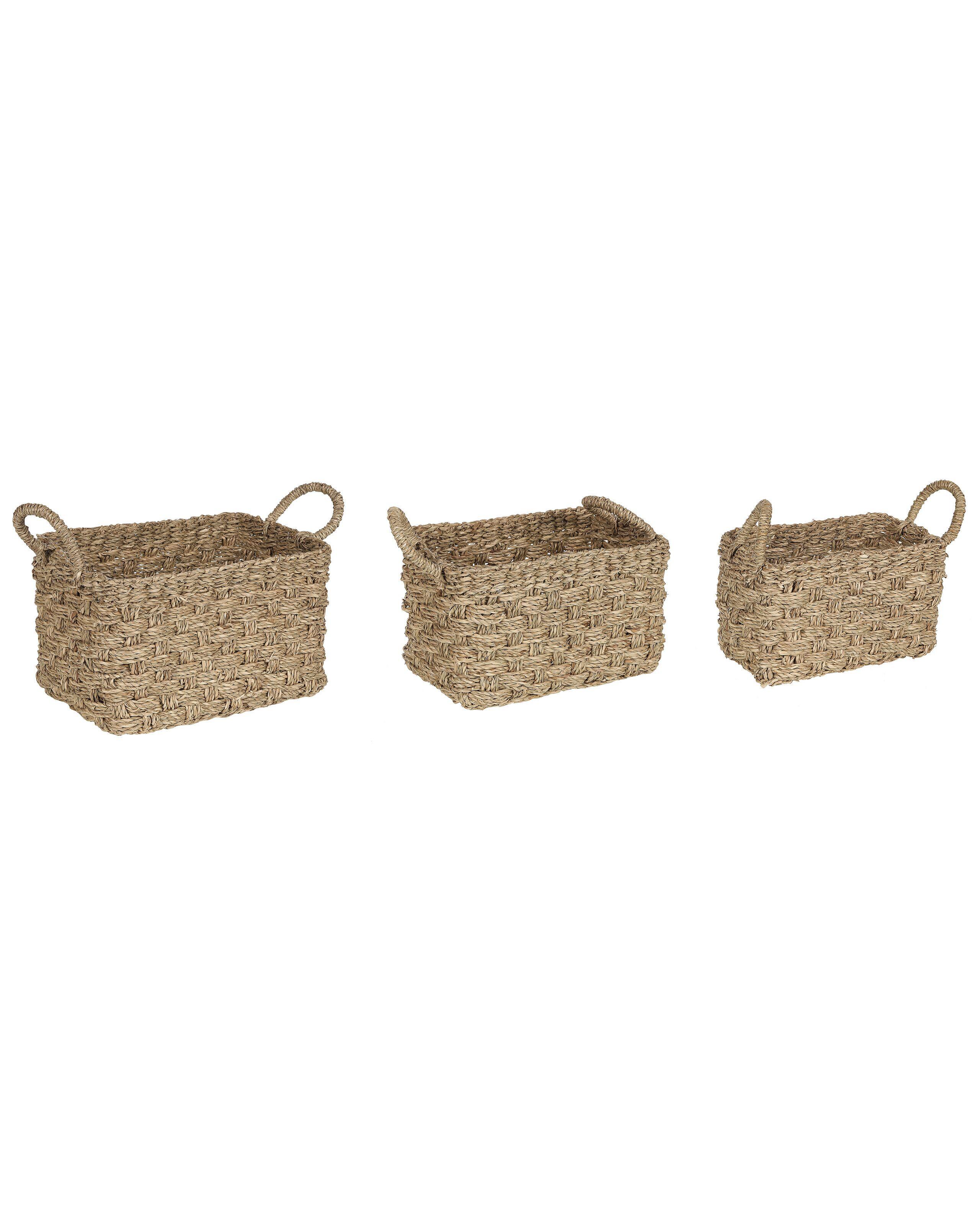 Handgeflochtene, natürliche Körbe im praktischen 3er-Set. Ideal geeignet, um kleine sowie grössere Gegenstände zu verstauen, ist dieses Korbset das Wohnaccessoire, das in keinem Haushalt fehlen darf. Die aus Seegras handgefertigten Körbe bestechen durch ihren natürlichen Charme, sind aber vor allem äusserst funktional. Sie eignen sich für jeden Raum, ob für Toilettenartikel im Bad, Spielzeug im Kinderzimmer oder Dokumente im Büro.