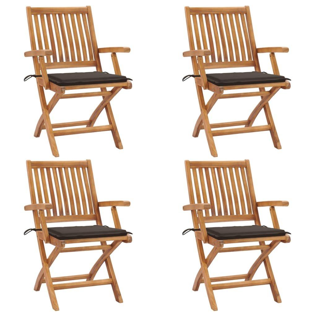 Das für dieses Möbelset verwendete Teakholz ist technisch getrocknet und anschließend fein geschliffen worden, um ein sehr glattes Erscheinungsbild zu eralten. Teakholz ist für seine außergewöhnliche Festigkeit und Witterungsbeständigkeit geschätzt und eignet sich daher besser für Gartenmöbel als jede andere Holzart. Teakholz ist die perfekte Wahl, wenn Sie ein langlebiges Gartenmöbel erwerben möchten. Dank der geschliffenen Oberfläche sind die Essstühle witterungsbeständig und leicht zu reinigen. Sie können auch zusammengeklappt werden, um bei Nichtgebrauch Stauraum zu sparen. Darüber hinaus sorgen die mitgelieferten Kissen für zusätzlichen Komfort. Jedes Kissen ist mit je 2 Bändern an zwei Ecken zur festen Befestigung am Stuhl versehen.