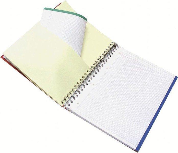 BIND'O BLOCK - Konferenzblock Mit Microperforation zum Abreissen, 4 Loch (3 x 80 mm), farbig sortiert, 120 Blatt, Tasche auf der Vorderinnenseite, mit farbigem Rand. A4+, kariert 5 mm, mit Rahmen und Kopfzeile mit Spiralbindung