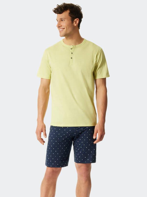 Schiesser Fashion Pyjama Kurzarm Henley Top und bedruckte Shorts