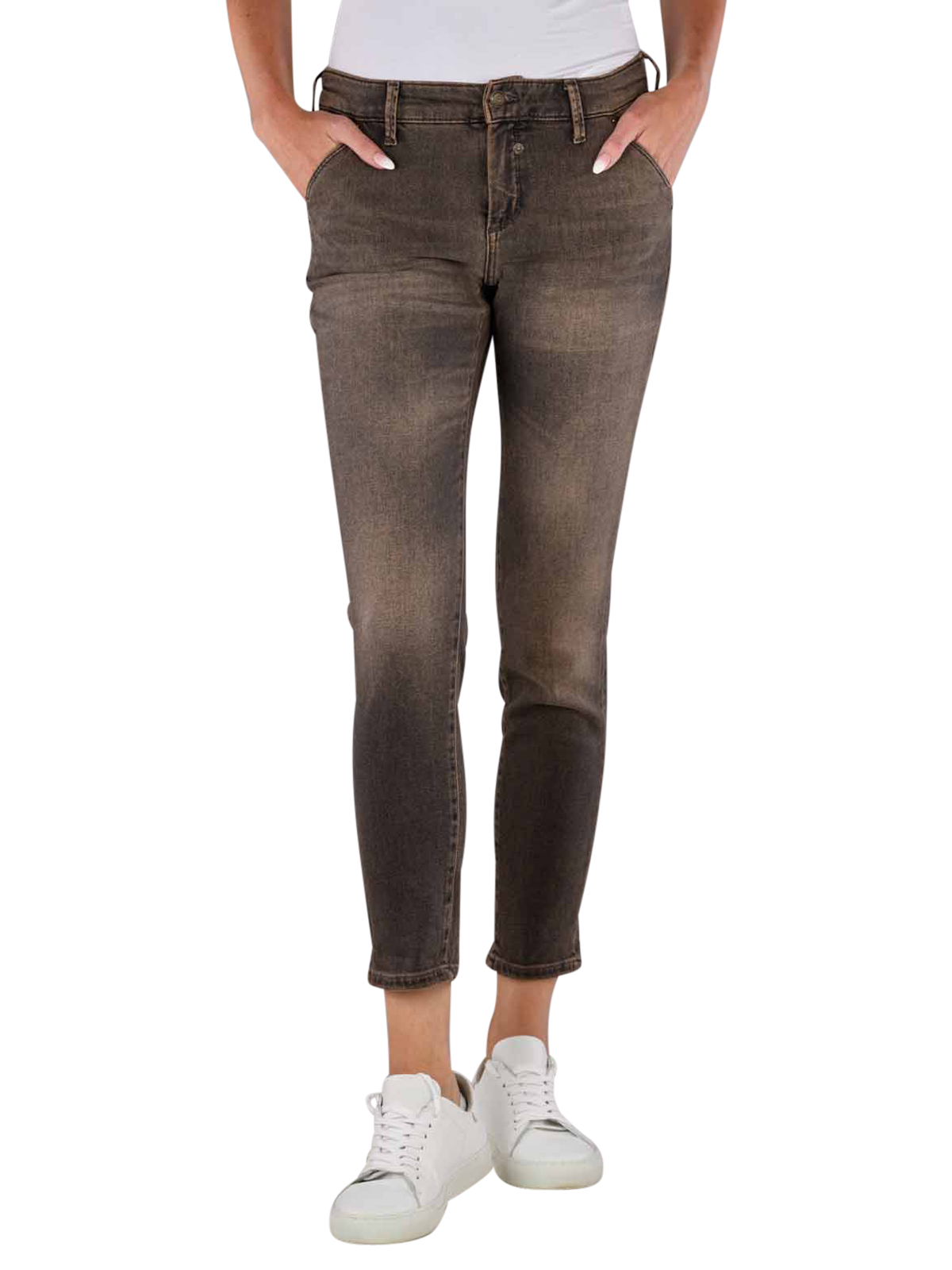 Die Vintage Denim Montana Chino ist eine modische Damen-Jeans in Braun mit geradem Beinausschnitt und tiefem Bund. Sie bietet eine perfekte Passform dank des Stretchanteils und eignet sich ideal für den Alltag.
