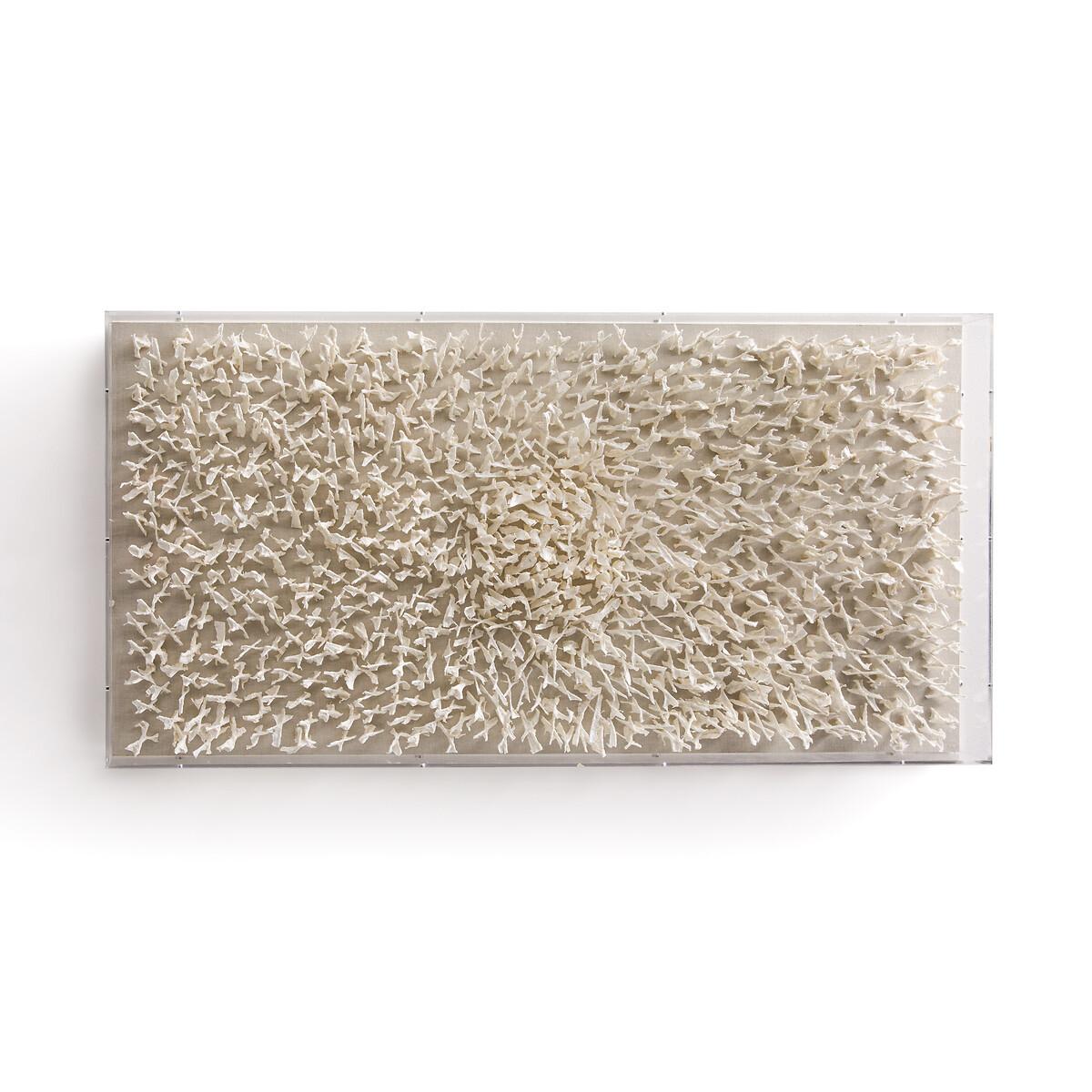 Der handgefertigte Wandschmuck Sudjo ist einem Korallenriff nachempfunden. Die Reliefstruktur kommt durch die Kombination von Pappmaché- und Acrylelementen zu Stande, die per Hand auf eine Unterlage aus Leinengewebe aufgebracht werden.Der Wandschmuck wird unter Plexiglas geschützt und kann hochkant oder quer aufgehängt werden. Jedes Stück ist ein Unikat..