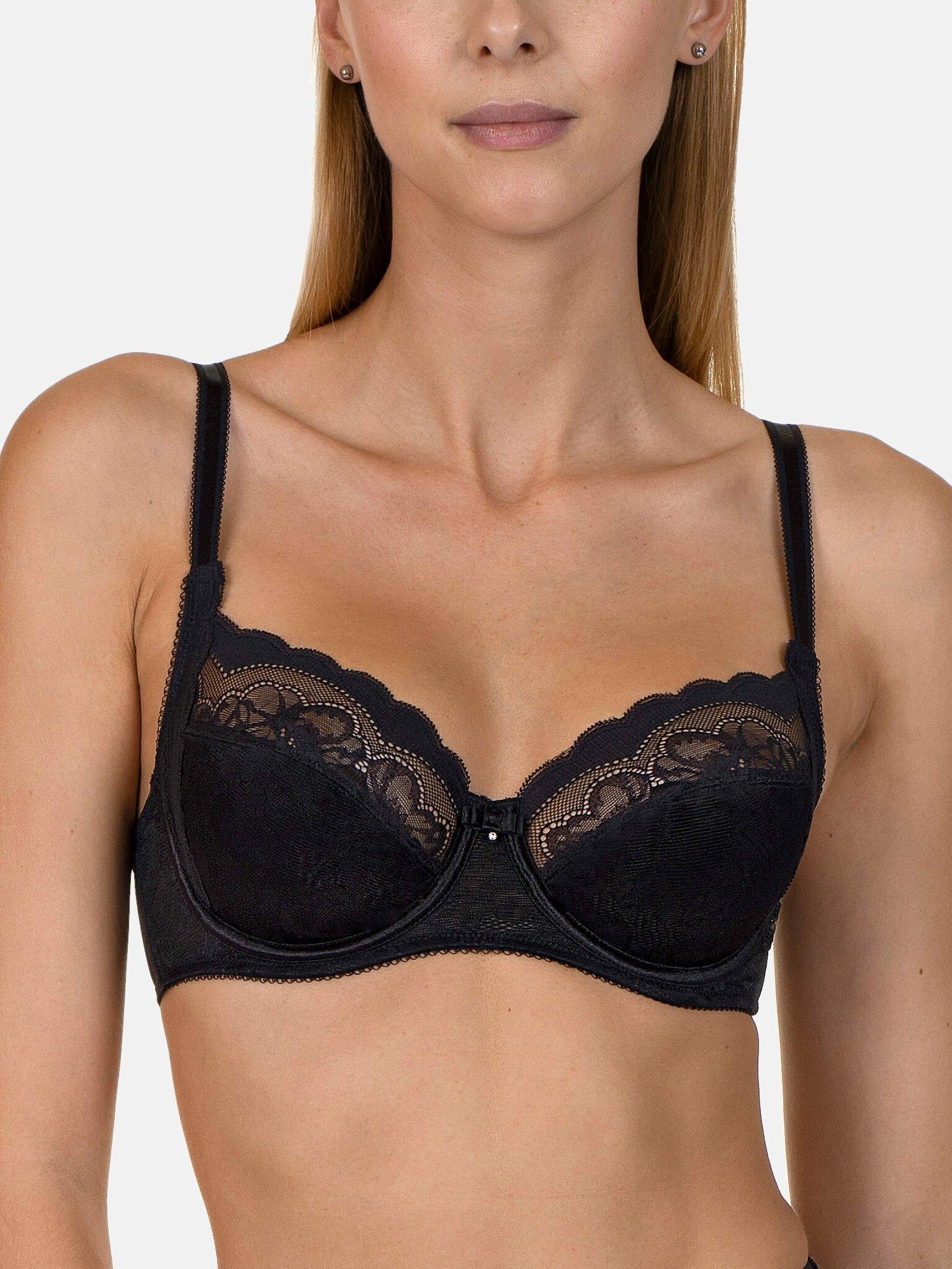 Der Evelyn Bügel-BH aus der Lisca Kollektion zeichnet sich durch ineinander verschlungene transparente und opake Spitzenteile aus, die eine subtile Weiblichkeit verleihen. Dieses leichte und feminine Modell bietet täglichen Komfort und ist aus attraktiver elastischer Spitze und weichem Strickgewebe gefertigt. Die Träger und schimmernden Details verleihen der Lingerie einen Hauch von Eleganz. Die Innenseite des BHs ist angenehm weich und samtig im Griff, die Cups sind glatt und die Spitzendetails sind seitlich integriert. Dieser nahtlose BH ist unter der Oberbekleidung unsichtbar und somit die ideale Wahl für Liebhaberinnen zeitloser Lingerie mit romantischem Touch.