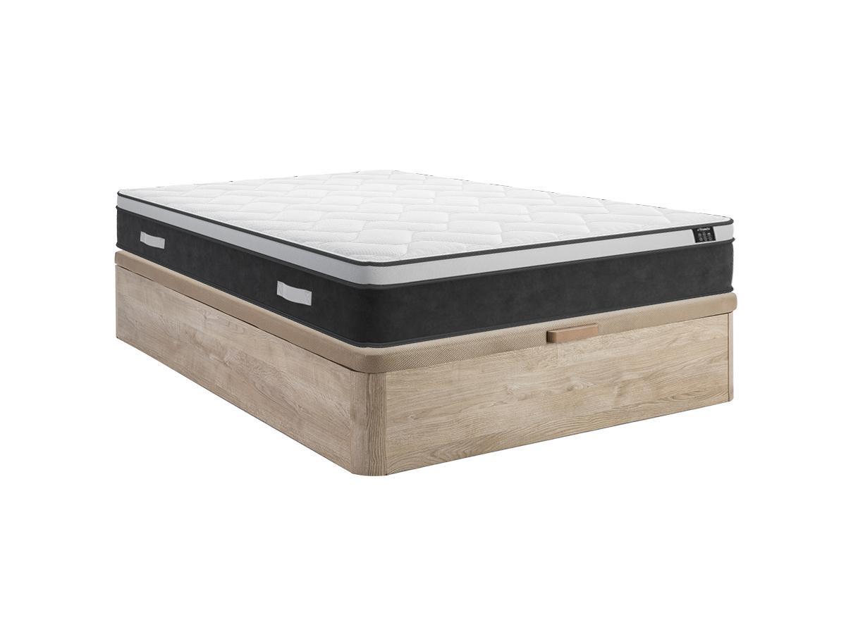 DREAMEA, Set aus Bettgestell mit Bettkasten + Taschenfederkernmatratze mit Memory Schaum - 160 x 200 cm - Stärke 25 cm - Holzfarben hell - ASTRIA Art Collection von YSMÉE