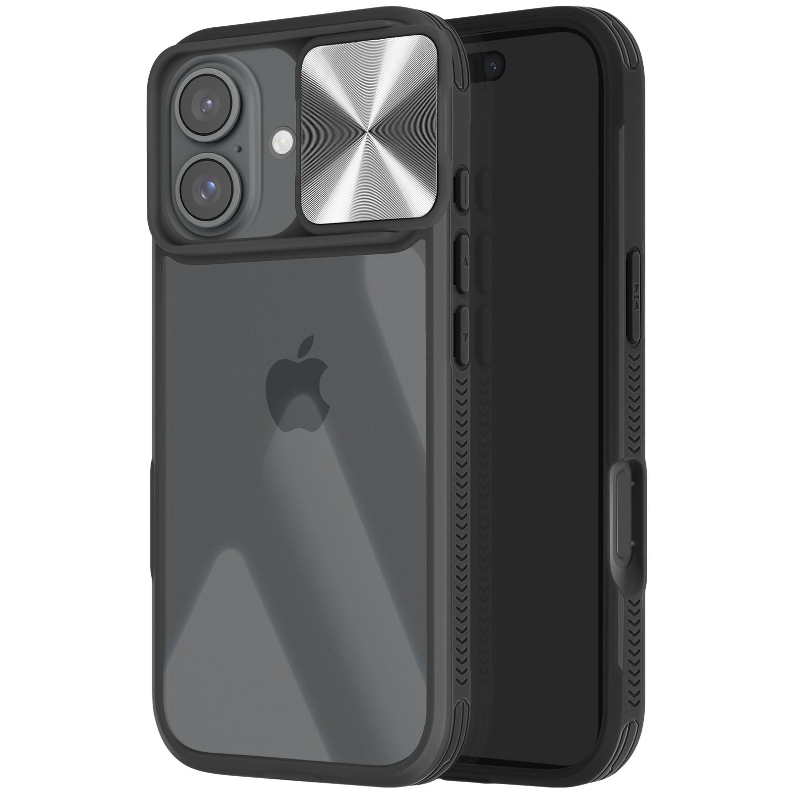 Schutzhülle für iPhone 16 Plus. Aus zwei Materialien mit einer Rückseite aus Polycarbonat und einem Rand aus Silikon. Schützt vor Stößen und Stürzen. Integrierte verschiebbare Kameraabdeckung. Erhöhte Ränder des Bildschirms. Transparente Rückseite. Zugängliche Funktionen und neu gestaltete Tasten. Mit QI kompatibel.