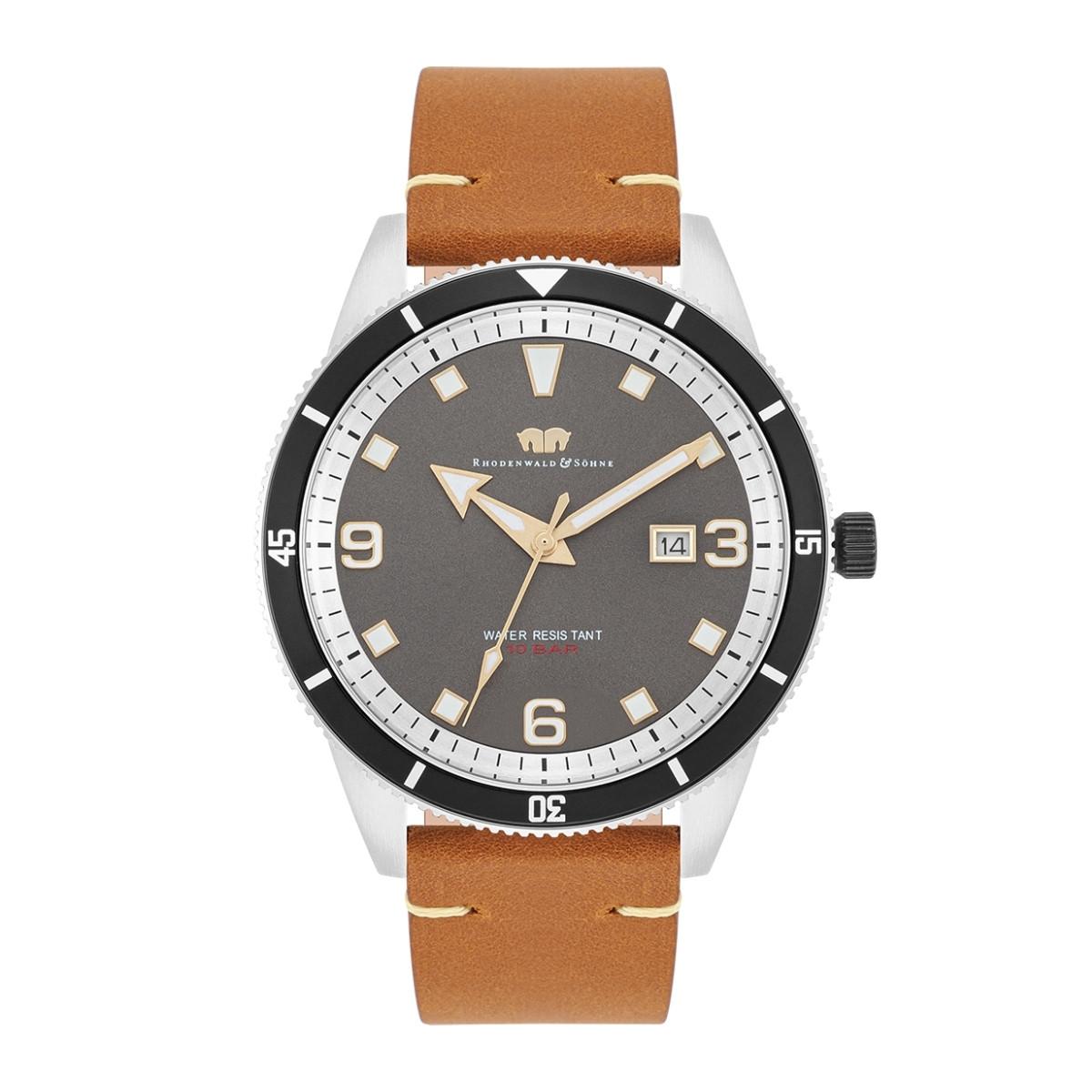 In dieser Herrenuhr der Manufaktur Rhodenwald & Söhne vereint sich sportliche Eleganz mit den Werten traditioneller Uhrmacherkunst zu einem exklusiven Accessoire. Das Zifferblatt setzt auf die Kombination aus markanten Strichindizes und großen arabischen Ziffern, lumineszierenden Zeigern und Datumsanzeige. Ein kühl schimmerndes Edelstahlgehäuse mit drehbarer Lünette rundet das durchdachte Designkonzept ab. Das strapazierfähige Material und ein präzises Quarzuhrwerk machen die Uhr zum unkomplizierten Begleiter im Büro und in der Freizeit. Das weiche Echtlederarmband sorgt für hohen Tragekomfort.