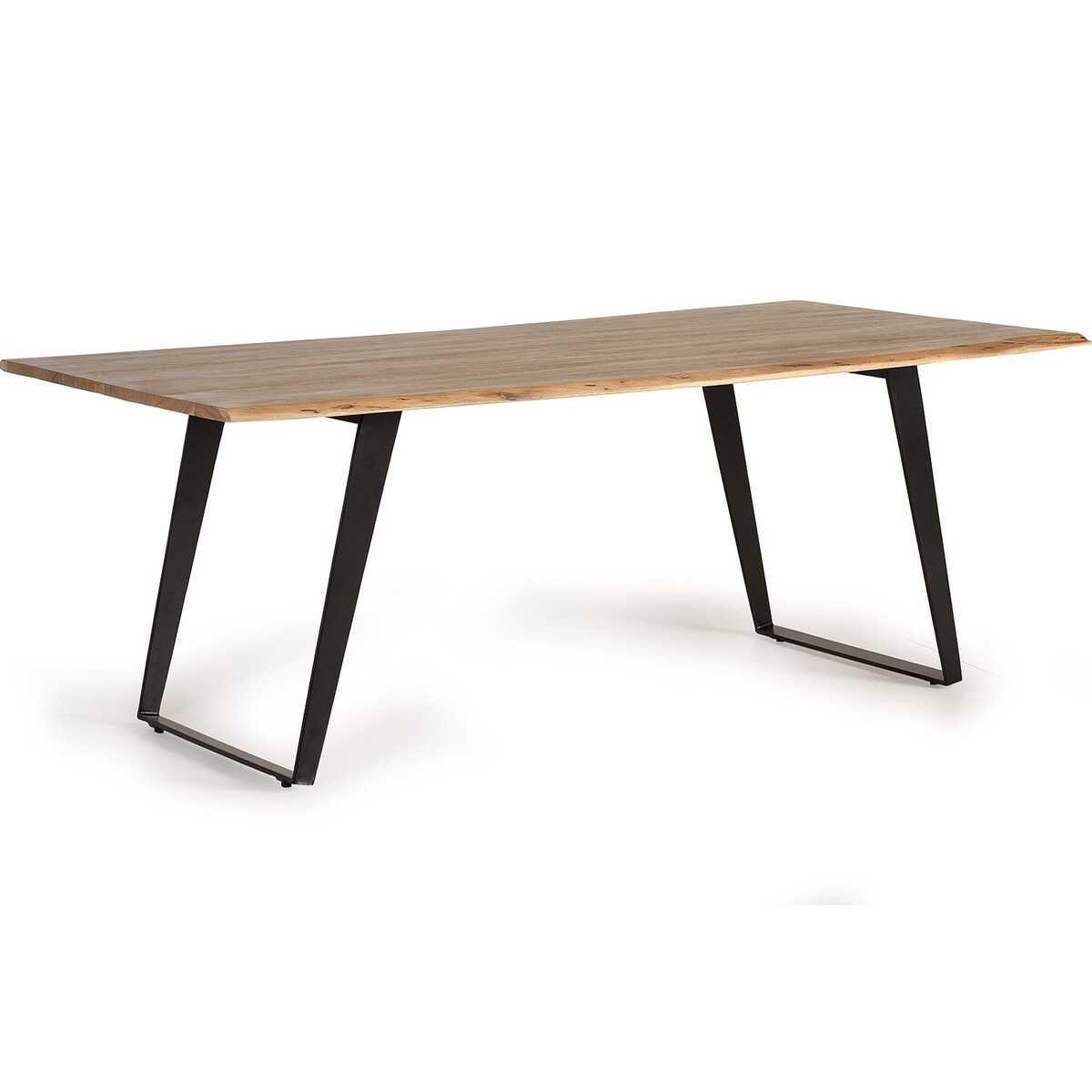 Der Esstisch aus Akazienholz und Metallgestell bringt einen Hauch von Natur und Industriecharme in Ihr Esszimmer. Mit seinem kontrastreichen Farbenspiel aus natürlichem Akazienholz und schwarzem Metall trifft dieser Tisch garantiert den Geschmack moderner Einrichtungsfans.