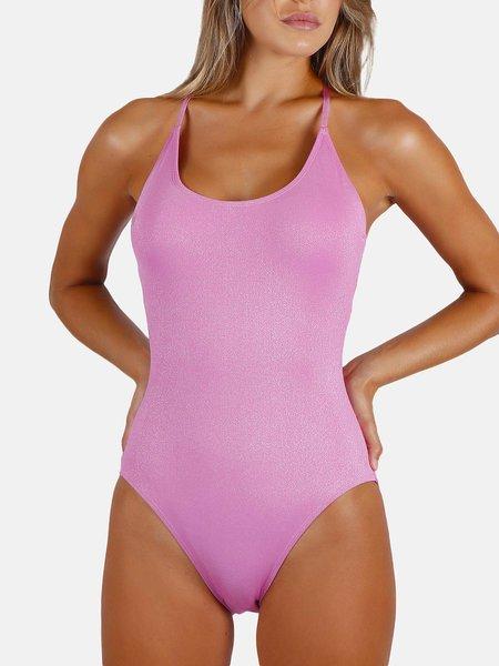 Dieser vorgeformte einteilige Badeanzug ist aus elastischem Badestoff mit Lurex gefertigt, der einen tollen Glanzeffekt erzeugt. Für maximalen Komfort ist er bügellos und die Cups sind mit herausnehmbaren Schalen ausgestattet, um individuellen Wünschen gerecht zu werden. Vorne hat er einen runden Ausschnitt, während schmale Träger im Rücken in einem Spiel der Überkreuzungen über einem sehr femininen U-Ausschnitt gebunden werden. Der Badeanzug ist für zusätzlichen Komfort innen gefüttert und verfügt über weiche, elastische Beinabschlüsse.