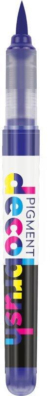 PIGMENT DECO BRUSH - Brush Marker Pigment DecoBrush Marker enthalten 2,4 ml ungiftige Farbe auf Basis organischer Pigmente. Sie werden in der sogenannten "free-ink" Technologie hergestellt, so dass die Farbintensität bis zum letzten Tropfen unverändert bleibt und die Tintenausgabe sich laufend kontrollieren lässt. Pigment DecoBrush Marker können auf Papier, Metall, Glas, Kunststoff, Holz, Textilien und vielen anderen Materialien verwendet werden. Auch auf dunklen Oberflächen erzeugen die Marker durch ihre satten, matten Farben einen grossartigen Effekt. Auf dünnem Papier schlägt die Farbe nicht durch. Der Gebrauch von Pigment DecoBrush Markern ähnelt jenem von Acrylfarben, ist jedoch in einem praktischen Marker mit einer flexiblen, pinselförmigen Nylonspitze verpackt. Die Farben können untereinander so lange vermischt werden, bis sie vollständig getrocknet sind. Die Trocknungszeit der Farbe hängt von der Oberfläche ab, auf welcher sie verwendet wird. Mit handelsüblichen Lacken, durch Bügeln oder in den Backofen stellen können die Farben fixiert werden