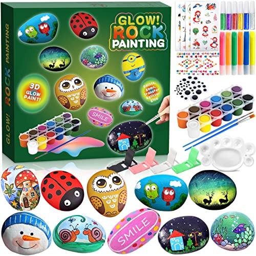 Leuchtendes Stein-Malset für Kinder Einfach zu erstellen Sichere, ungiftige Farbe, wasserfest nach dem Trocknen im Stein. 6 im Dunkeln leuchtende Farben Malen Sie Ihre eigenen im Dunkeln leuchtenden Felsen Das perfekte Geschenk Unser Rock Painting Kit enthält alles, was Sie brauchen. Dieses personalisierte Do-it-yourself-Bastelset macht Ihren Kindern Spaß und unterhält sie! Es ist auch ein perfektes personalisiertes Geschenk für Kinder ab 3 Jahren. Größe-9.1 x 6.9 x 1.9 cm