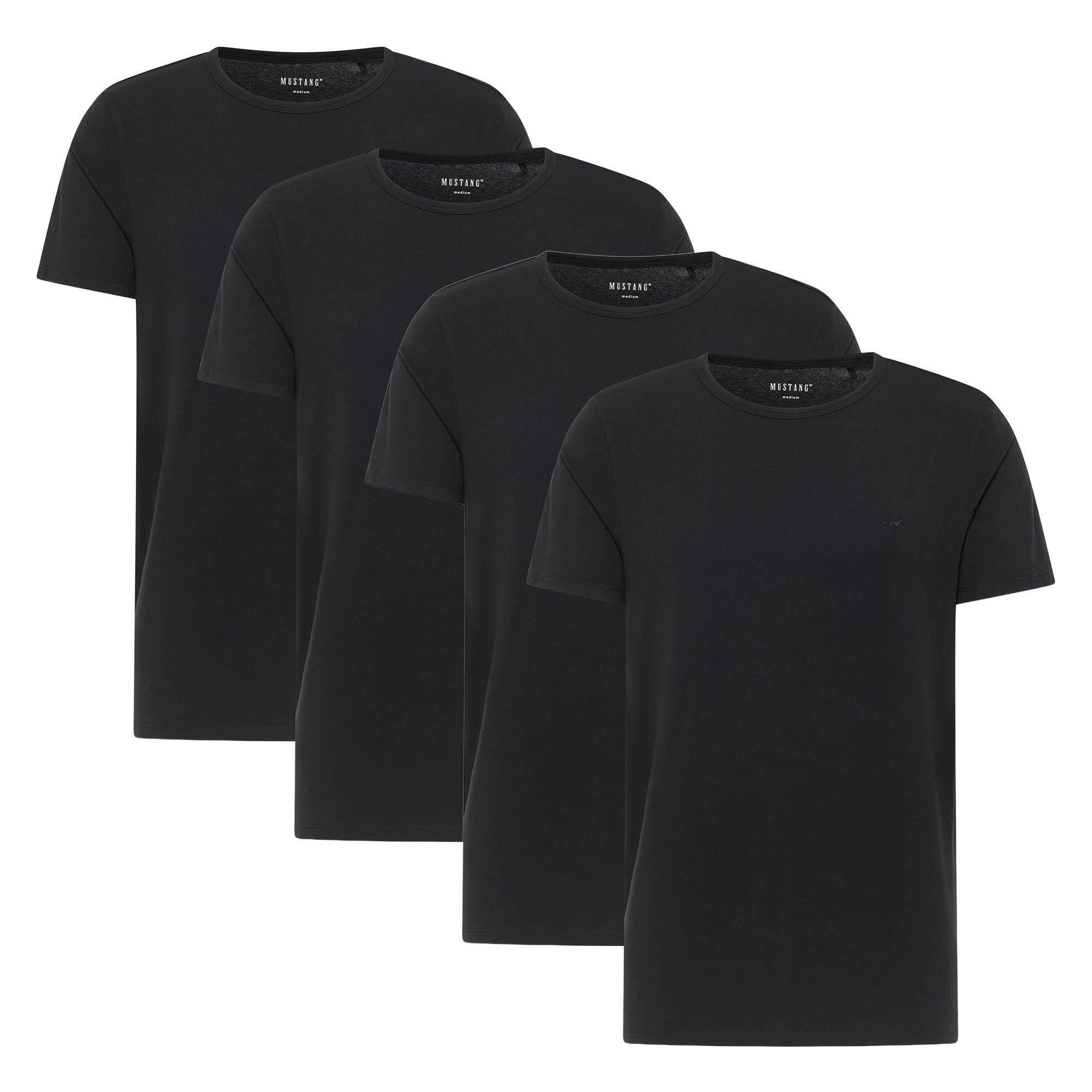 MUSTANG Herren Basic Shirt im Viererpack. Lässiges T-Shirt mit Rundhalsausschnitt und geradem Saum. Materialmischung mit nachhaltiger Bio-Baumwolle und Stretch-Anteil.