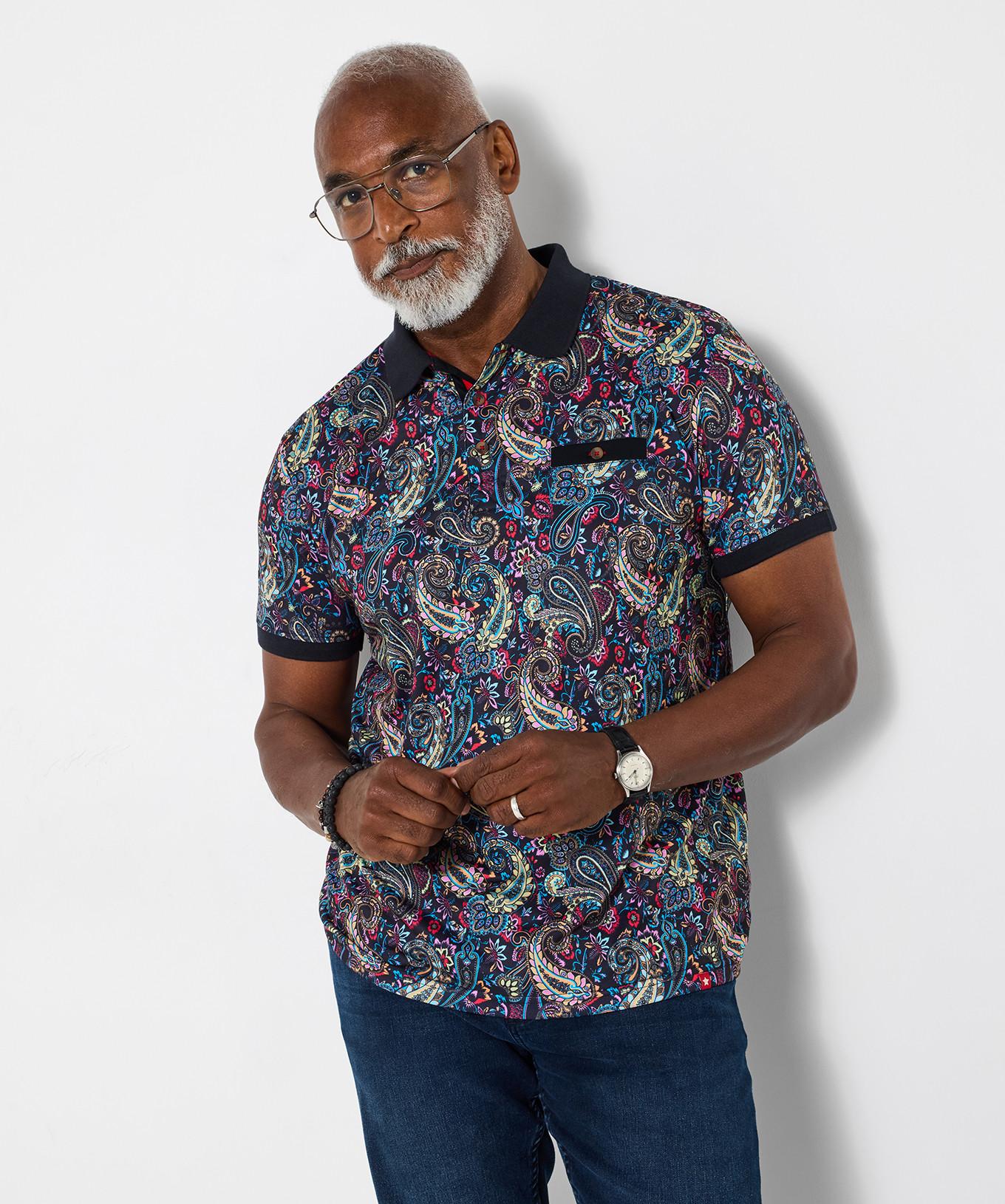 Dieses Freizeithemd präsentiert ein lebhaftes Paisley-Muster und sorgt für einen unverwechselbaren und stilvollen Look. Das Design umfasst Kontrastdetails am Kragen, an den Ärmelbündchen und an der Taschenleiste, die dem Gesamtbild eine raffinierte Note verleihen. Es ist ein vielseitiges Kleidungsstück, das für verschiedene legere Anlässe geeignet ist.