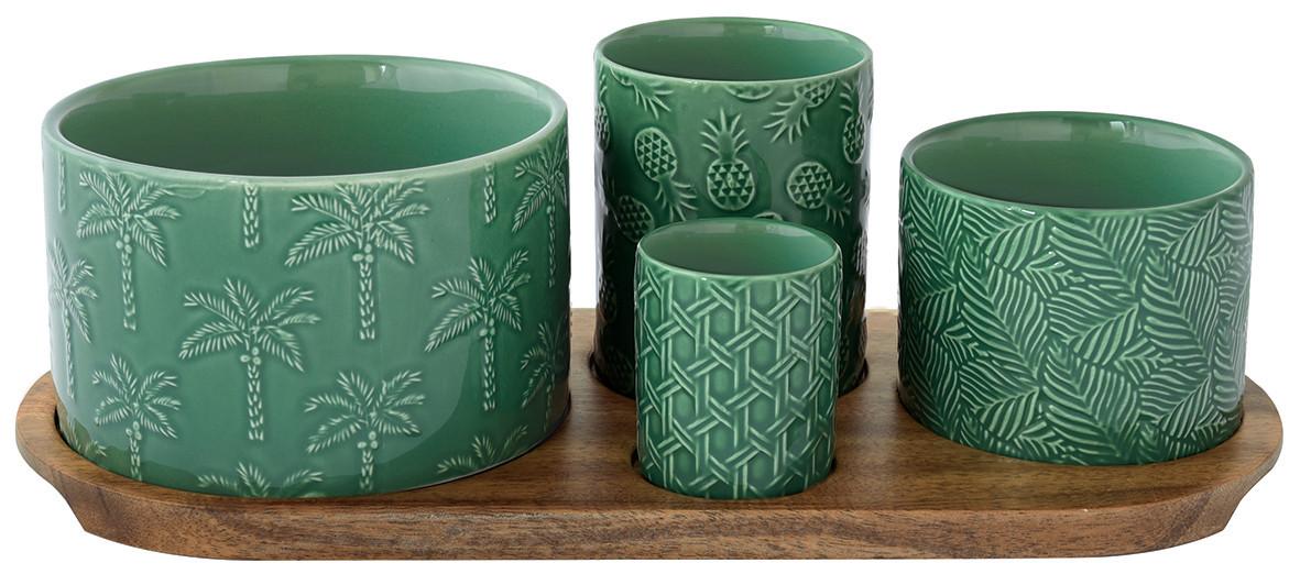 Das Tropicana Vorspeisenset: Erhöhen Sie Ihr Esserlebnis mit einem Hauch von Eleganz. Dieses exquisite Set wurde in Perfektion gefertigt und beeindruckt durch sein Design. Das mit zarten Details verzierte Akazientablett ergänzt sich nahtlos mit den vier zylinderförmigen Porzellanschalen in verschiedenen Größen. Ganz gleich, ob Sie eine Dinnerparty veranstalten oder einen gemütlichen Spieleabend zu Hause genießen, dieses Set verleiht jedem Anlass mühelos Charme und Raffinesse.