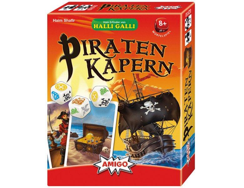 Auf der Totenkopfinsel versammeln sich Piraten zu einem aufregenden Würfel- und Kartenspiel. Ziel ist es, durch geschicktes Würfeln vorgegebene Kombinationen zu erreichen und zuerst 6000 Punkte zu sammeln. Das Spiel enthält 40 Karten, 8 Kaperwürfel, einen Block und eine Spielanleitung.