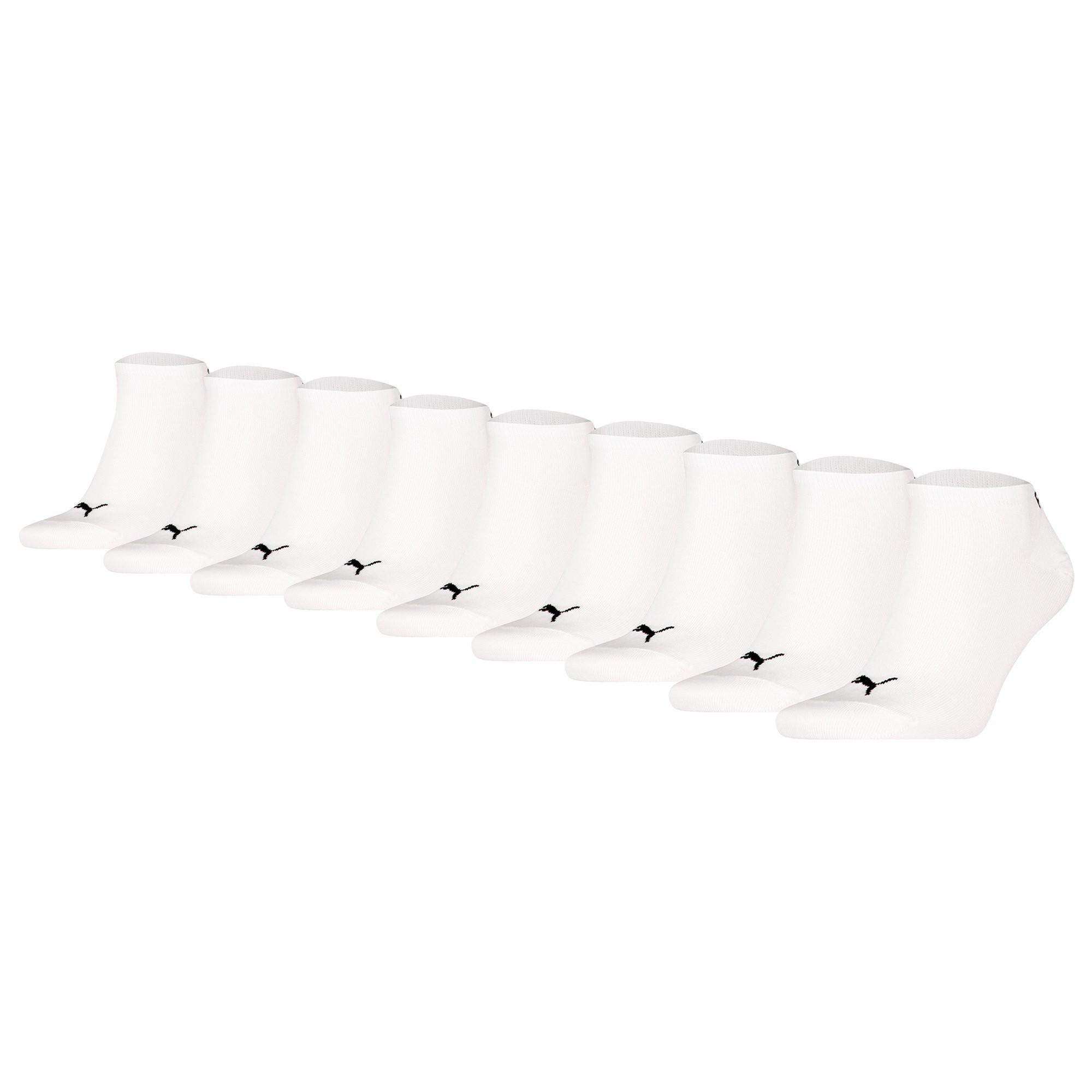 Diese PUMA Unisex Sneakersocken sind im praktischen 9er Pack erhältlich. Es handelt sich um einfarbige Basic Socken mit markentypischem Logo und flachen Zehennähten.