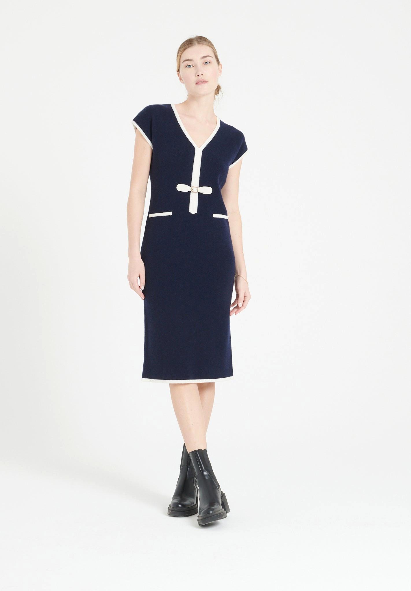Das MIA 2 Midikleid bietet ein luxuriöses Gefühl und einen eleganten Fall. Dieses Kleid verfügt über einen raffinierten V-Ausschnitt und eine Midilänge, was es zu einer vielseitigen Ergänzung für jede Garderobe macht. Das Design wird durch kontrastierende Zierleisten und einen dekorativen Schnallenakzent an der Taille aufgewertet, die einen Hauch von raffiniertem Stil verleihen.