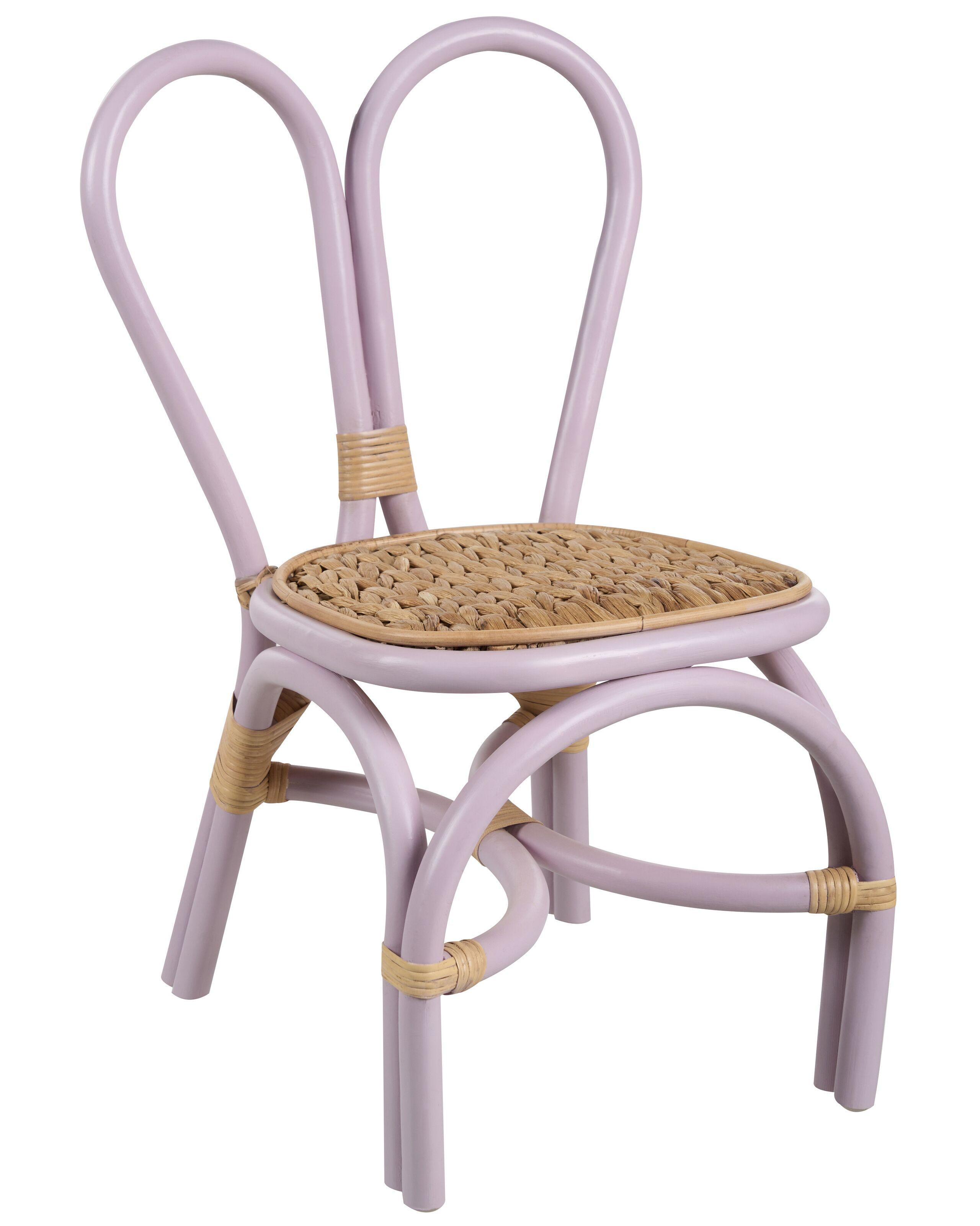 Natürlicher Rattan-Stuhl in Kindergrösse mit naturfarbenen Details. Dieser kleine bezaubernde Stuhl ist die perfekte Ergänzung für jeden Raum, und insbesondere für Kinderzimmer. Aus leichtem Material gefertigt, ist er nicht nur schön, sondern auch leicht zu bewegen. Dieses einzigartige Möbelstück zeichnet sich durch natürliche Rattan-Elemente aus, die durch hübsche violette Beine und die Rückenlehne ergänzt werden, deren originelle Form an ein Herz oder Hasenohren erinnert. Lassen Sie Ihrer Fantasie freien Lauf und schaffen Sie eine praktische und niedliche Umgebung mit diesem handgefertigten Kinderstuhl.