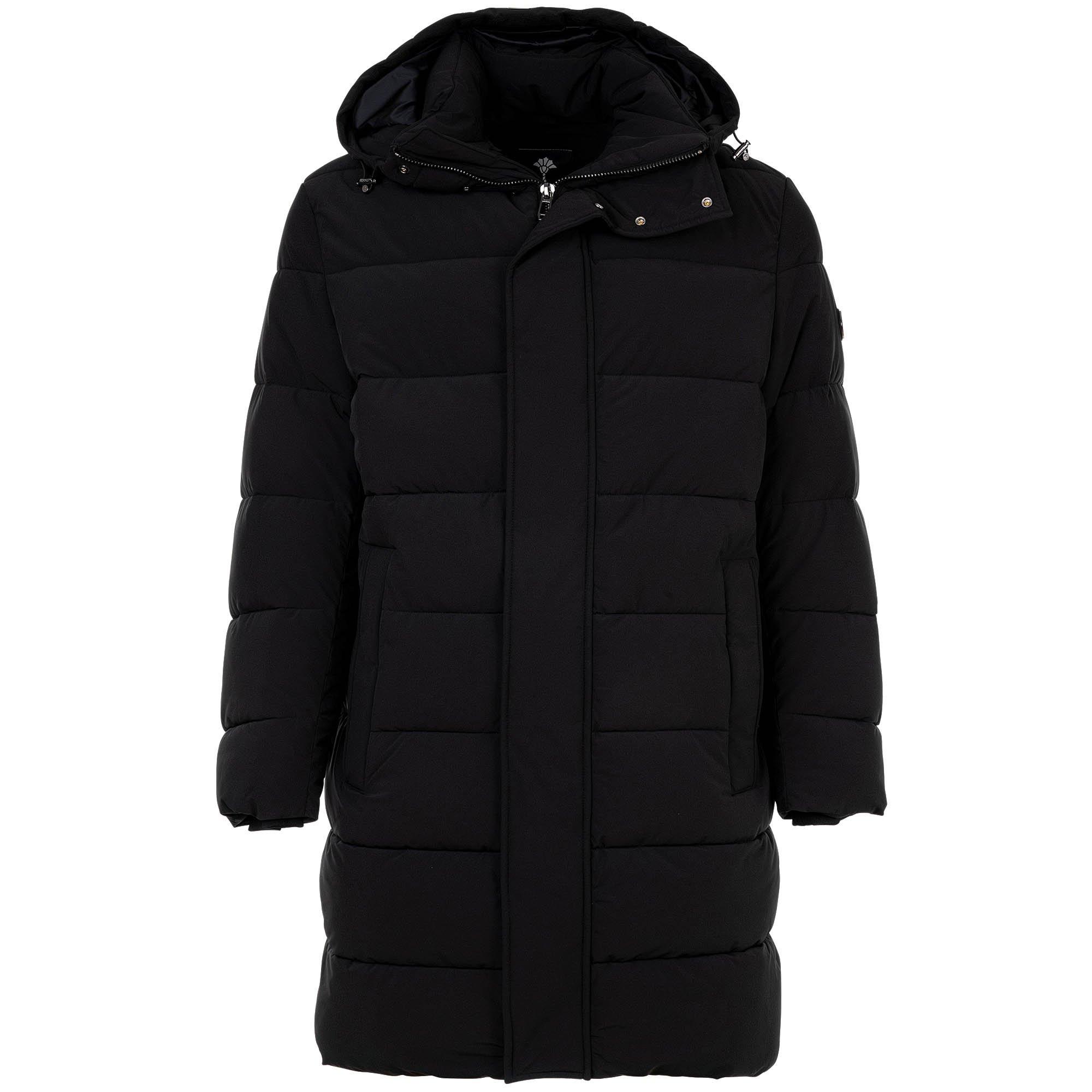 Warmer Kurzmantel für Herren von der Marke JOOP!. Abgesteppt mit durchgehendem Zipper und Kapuze. Seitliche Eingrifftaschen und Logo-Patch am Arm.