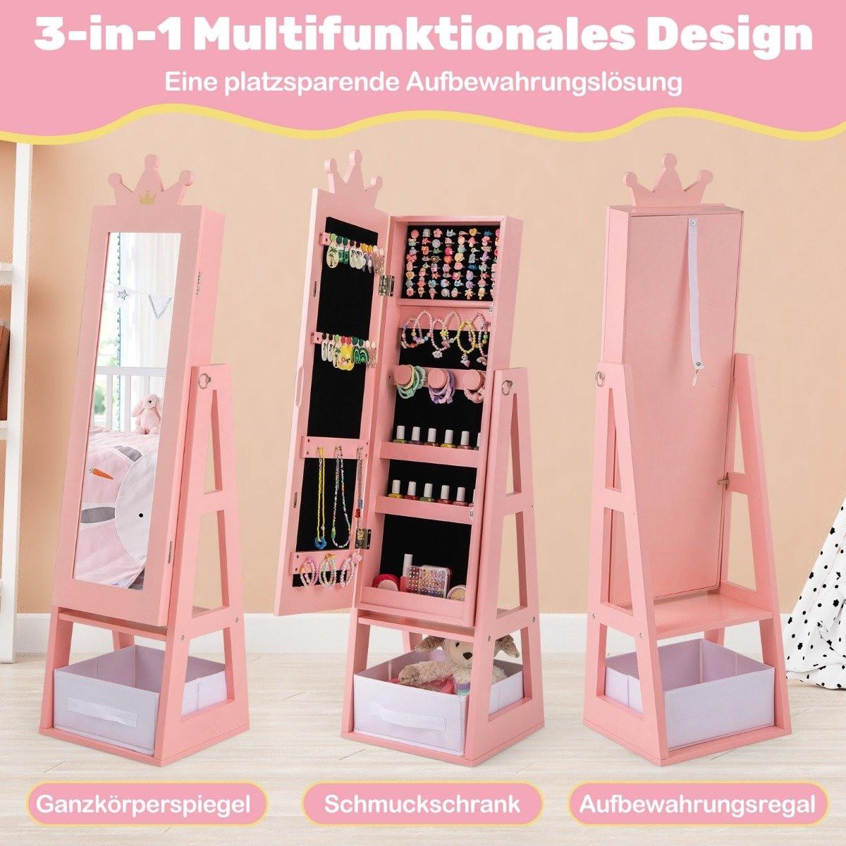 Das platzsparende 3-in-1-Design unseres Schmuckschranks kombiniert einen Ganzkörperspiegel, Schmuckaufbewahrung und zusätzliche Regale und ist somit die perfekte Wahl für kleine Räume. Dadurch wird sichergestellt, dass jeder Zentimeter des Zimmers Ihres Kindes effektiv genutzt wird. Die robuste und robuste Konstruktion garantiert Langlebigkeit und hält den spielerischen Eskapaden der Kinder stand. Für zusätzliche Sicherheit kann der Schrank mit dem mitgelieferten Anti-Kipp-Kit sicher an der Wand montiert werden.