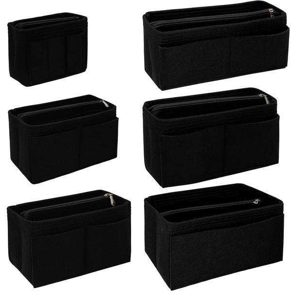 Diese praktischen Tascheneinsätze sind darauf ausgelegt, den Inhalt einer Handtasche zu organisieren. Sie verfügen über mehrere Fächer und einen Reissverschlussbereich, um Gegenstände sicher und leicht zugänglich aufzubewahren. Die Einsätze sind in verschiedenen Grössen erhältlich, um zu unterschiedlichen Taschenstilen zu passen.