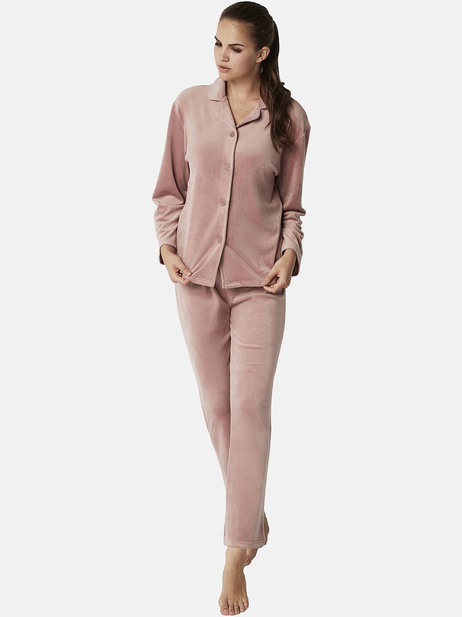 Dieses klassisch geschnittene Nachtwäsche-Set ist aus einem ultraweichen und hautfreundlichen Stoff gefertigt. Es besteht aus einer Hose und einem langärmeligen Oberteil. Die gerade geschnittene Hose hat einen elastischen Bund, der für einen besseren Tragekomfort und eine bessere Passform sorgt. Das Oberteil ist ein langärmeliges Hemd, das vorne mit einer Knopfleiste geschlossen wird. Es ist perfekt für entspannte Abende und kühlere Winternächte, wobei das Fleece-Material ein samtig weiches Gefühl bietet, um warm zu halten.