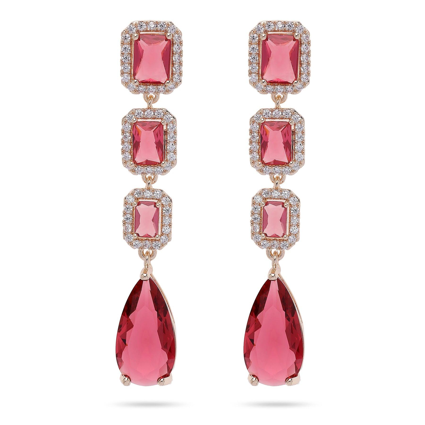 Diese eleganten Ohrringe bestechen durch eine faszinierende Kombination aus tiefgrünen Edelsteinen mit einem satten violetten Rand. Die quadratisch geschliffenen Steine fallen anmutig zu einem großen, facettierten, tropfenförmigen grünen Edelstein ab und verleihen den Ohrringen eine kühne und zugleich raffinierte Note. Ihr filigranes Design und der lebendige Kontrast machen sie zu einem Blickfang für jeden besonderen Anlass. Größe: 1,0 cm x 6,0 cm | Beschichtung: Vergoldet | Verschluss: Stecker und Rückseite
