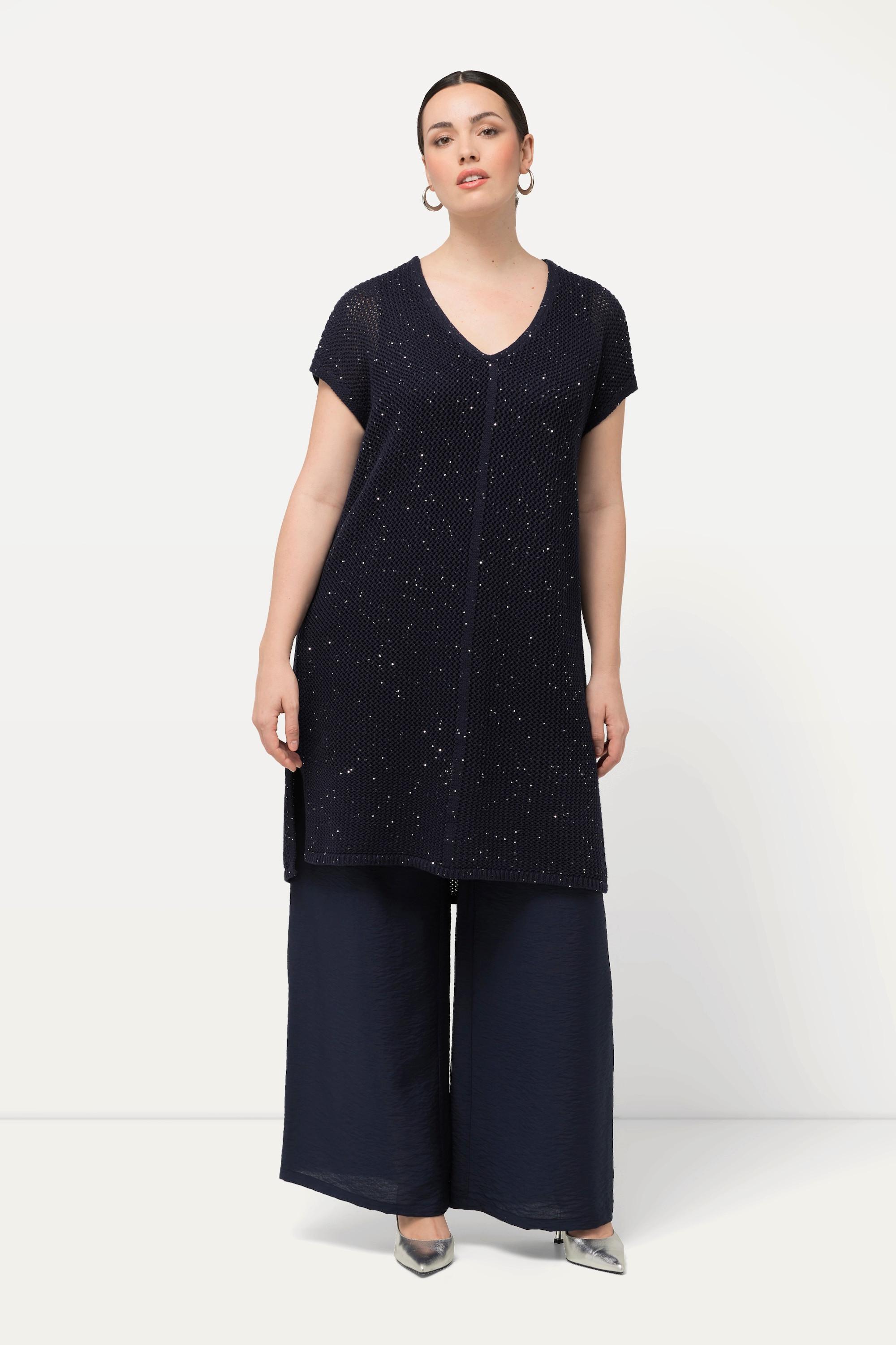 Ulla Popken Long-Pullover Struktur Pailletten Rundhals Halbarm