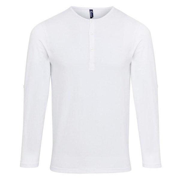 Dieses Langarm-T-Shirt verfügt über einen klassischen Henley-Ausschnitt mit Knopfleiste und bietet eine vielseitige und bequeme Option für den Alltag. Das Design umfasst einen Rundhalsausschnitt und lange Ärmel, wodurch es für verschiedene Anlässe geeignet ist. Die Ärmel können hochgekrempelt und mit einem innenliegenden Knopf befestigt werden.
