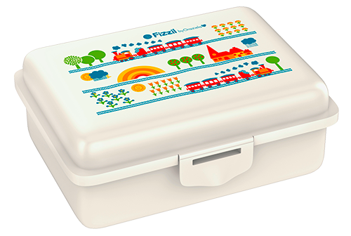 Die Fizzii Kinderbrotdose mit Trennfach ist BPA-frei und enthält keine Weichmacher.