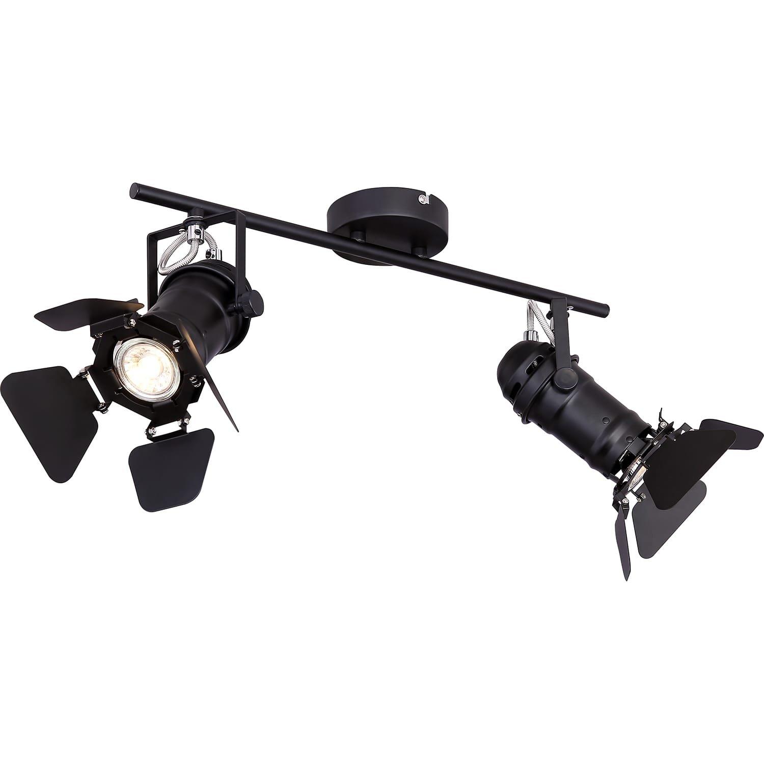 Strahler Metall schwarz, Filmsetstrahler, bewegliche Klappen, LxBxH:540x160x265, exkl. 2xGU10 50W 230V