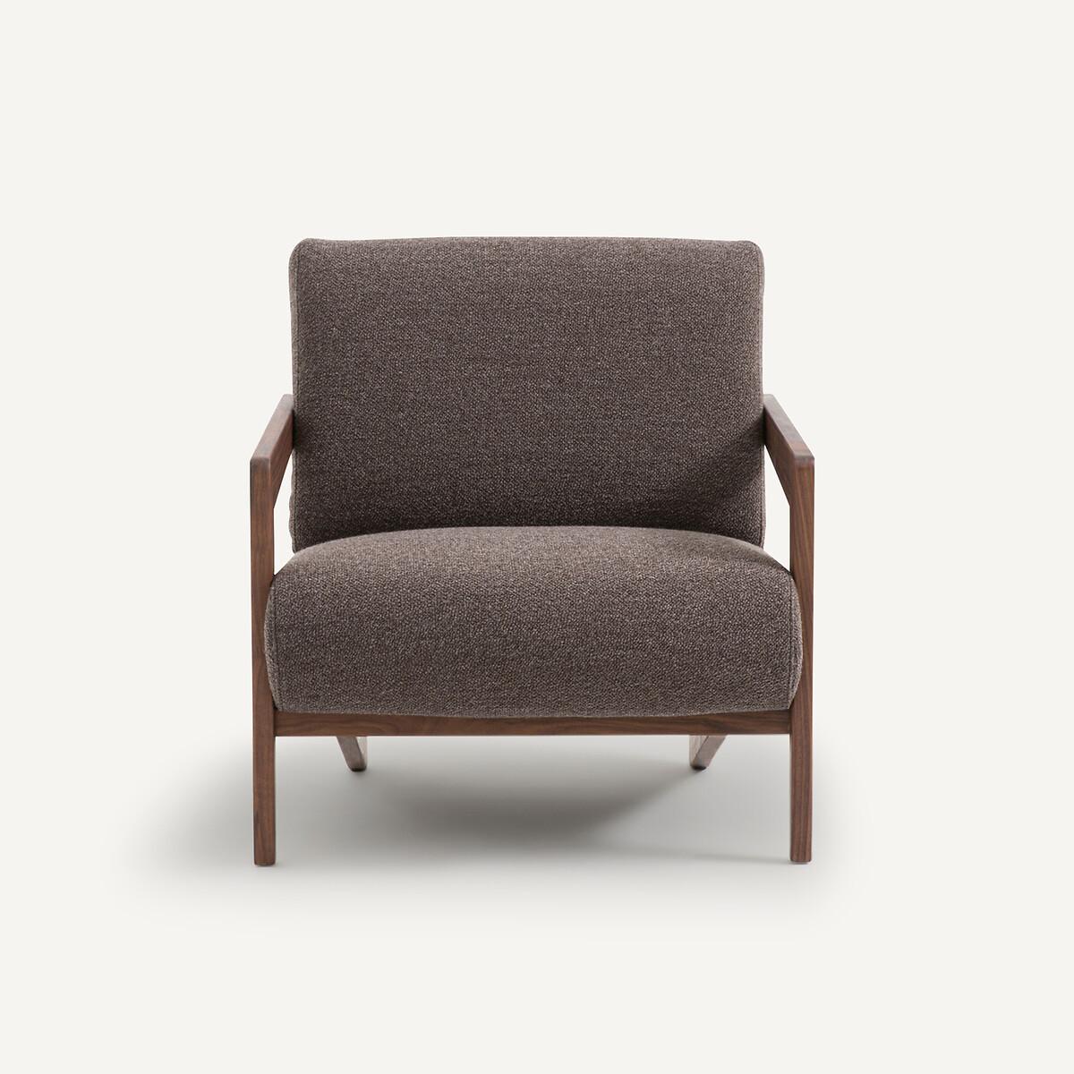 Der Sessel Izag - von den schönsten Möbeln der 50er inspiriert - begeistert mit einem sichtbaren Gestell in geometrischer Linienführung. Gestell und Armlehnen aus massivem geölten Nussbaumholz bilden das Herzstück des Sessels.
