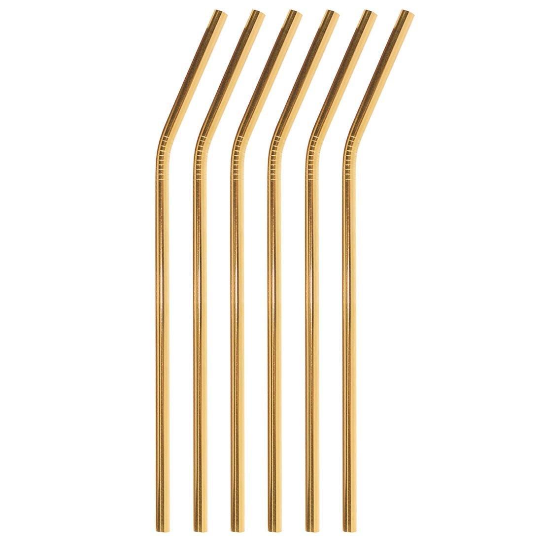eStore 6x Trinkhalme aus gebogenem Metall - Gold