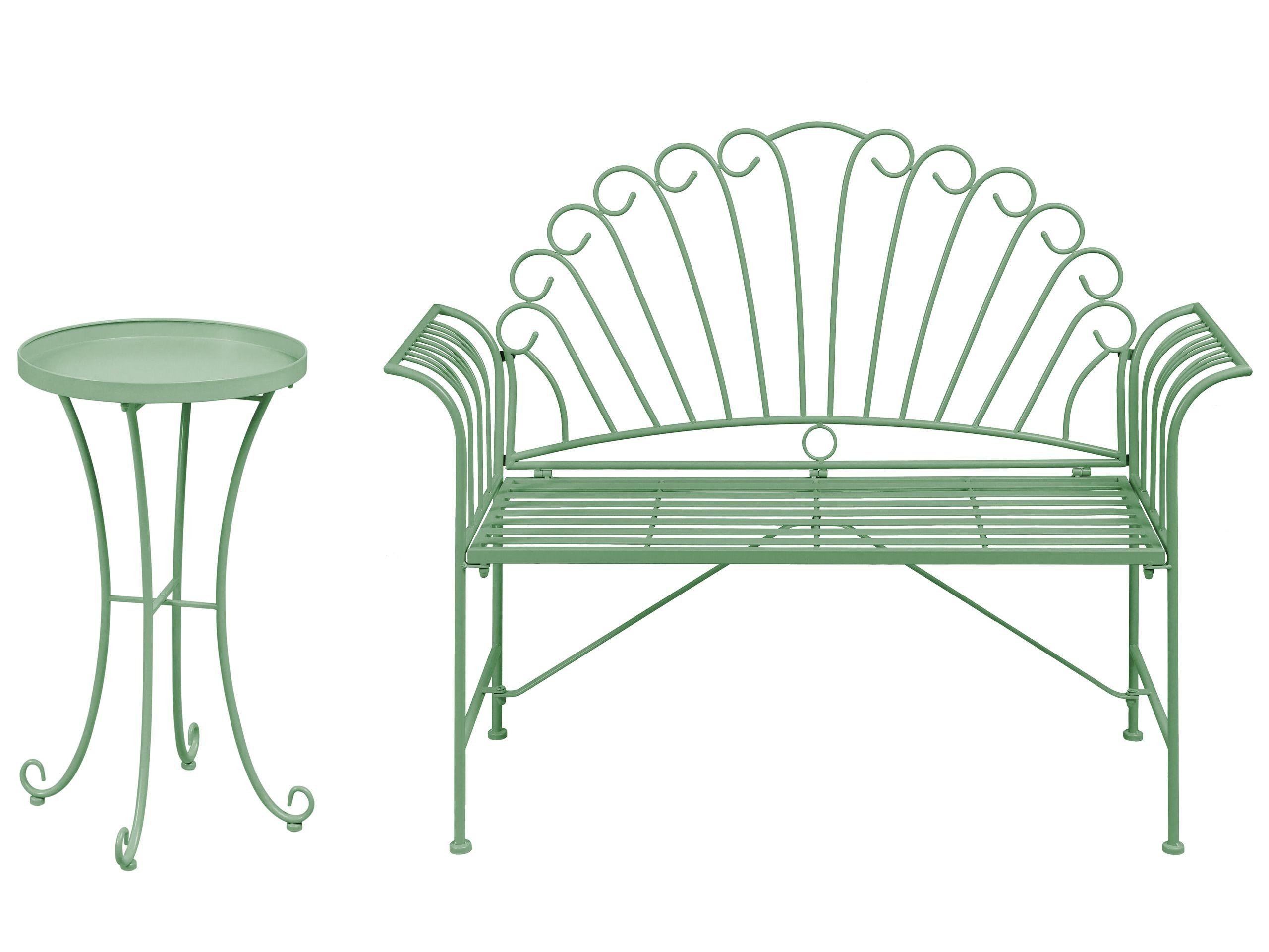 Zauberhafte filigrane 2-Sitzer Gartenbank mit passendem Beistelltisch. Verleihen Sie Ihrem Garten, Balkon oder Ihrer Terrasse mit diesem originellen Gartenset einen ganz besonderen Vintage-Charme. Die Metall-Sitzbank-Set verfügt über geschwungene Armlehnen, eine verschnörkelte Rückenlehne und passende Untergestelle. Stellen Sie den Beistelltisch neben die Bank, um zusätzlichen Platz für Ihren Kaffee und Ihre Zeitschriften zu gewinnen. Dank ihres zeitlosen, französischen Designs bildet das Set eine fantastische Ergänzung für jeden Outdoorbereich und bietet dabei auch bequem Platz für bis zu zwei Personen.