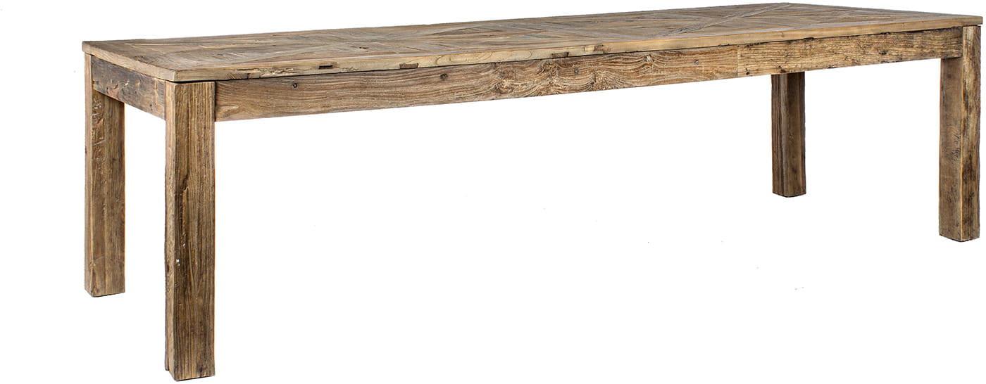 Struktur aus recyceltem Ulmenholz, Platte zu antikiertem Parkett verarbeitet. Lackierung auf Nitrocellulosebasis.