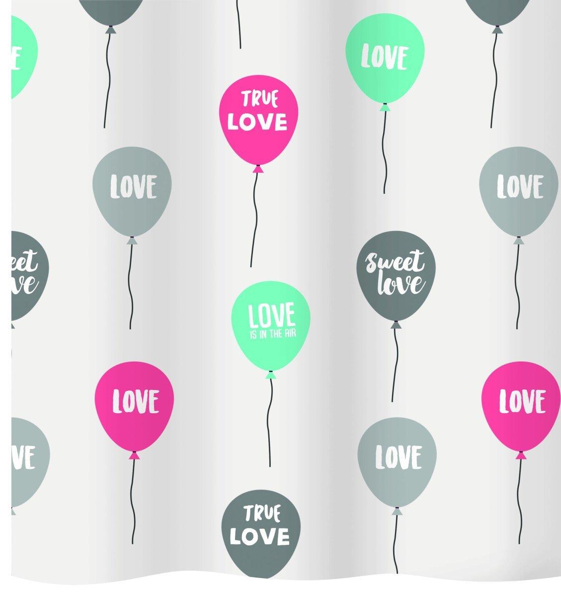 diaqua® Duschvorhang Textil Love 240 X 180 CM - Wunderschöner Textil-Duschvorhang aus hochwertigem, wasserabweisendem Polyestergewebe. Durch das eingearbeitete Beschwerungsband aus Polypropylen (Blei-frei) fällt der Vorhang schön, ohne zu verwehen. Der Duschvorhang ist mit 16 Ösen versehen, die für handelsübliche Duschvorhangringe oder auch Duschvorhangschienen geeignet sind. Die Grösse von 240x180 cm ist ideal geeignet für den Einsatz an Duschvorhangstangen über Eck an der Badewanne.