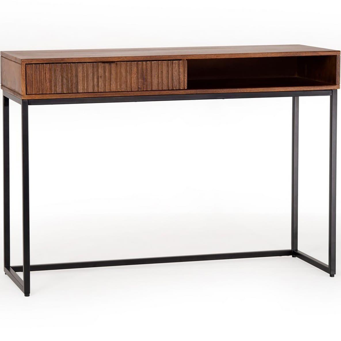 Verleihen Sie Ihrem Raum einen Hauch von Eleganz mit unserer Tadita Konsole. Hergestellt aus robustem Mango-Holz, verfügt sie über eine feine Nitrozellulose-Lackierung, die ihr eine glänzende, schützende Oberfläche verleiht. Ihre Rückenlehne aus MDF und die Beine aus Stahl mit Epoxidpulverbeschichtung sorgen für zusätzliche Stabilität und Langlebigkeit. Diese Konsole ist nicht nur äusserst praktisch, sondern auch ein echtes Design-Highlight, das jedes Interieur aufwertet. Bitte beachten Sie, dass die Beine montiert werden müssen.