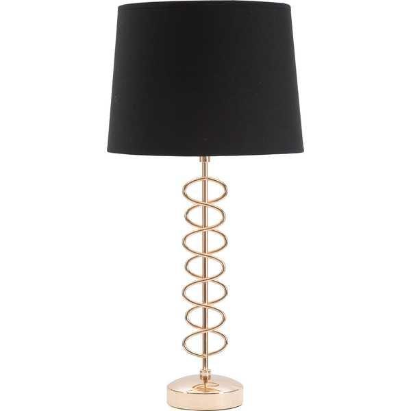 Tischleuchte aus goldenem Metall mit schwarzem Stoffschirm. Die elegant schlichte Verarbeitung des Sockels und der Kontrast zwischen Schwarz und Gold verleihen jedem Raum einen Hauch von Raffinesse. Die Grösse des Lampenschirms beträgt: 30 x 22 cm.