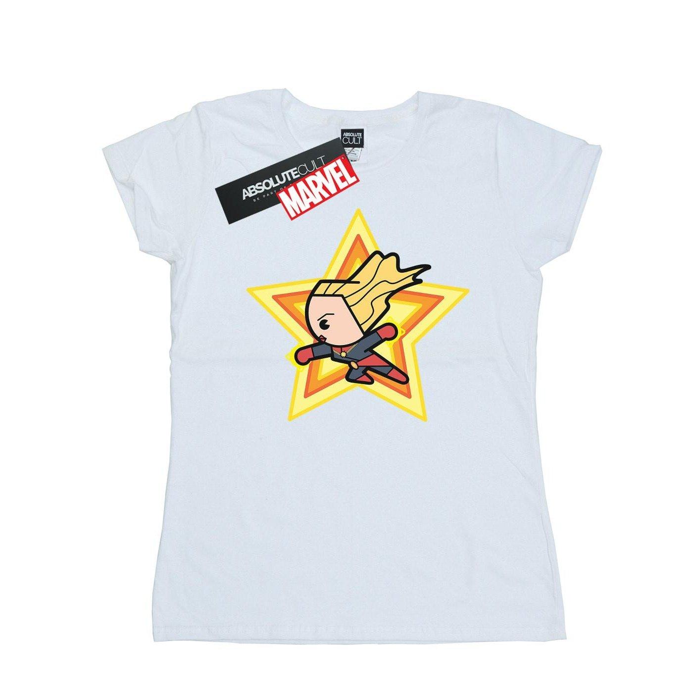 Dieses T-Shirt zeigt eine lustige, stilisierte Grafik von Captain Marvel vor einem Stern. Es ist eine grossartige Ergänzung für jede Fan-Garderobe und bietet eine bequeme Passform und ein verspieltes Design.