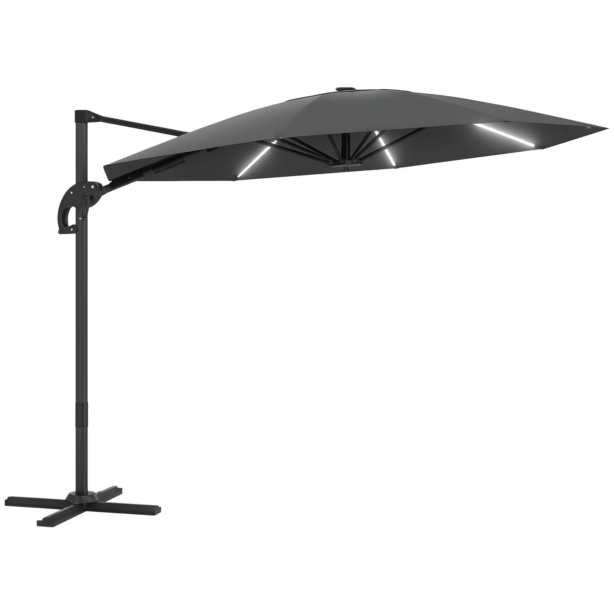Erleben Sie weitreichenden Schatten gepaart mit abendlichem Zauber durch den Outsunny Sonnenschirm inklusive Standfuß, ausgestattet mit einer 360-Grad-Rotation für lückenlosen Sonnenschutz. Sieben Lichterketten aus Kupferdraht mit regulierbarer Helligkeit des Gartenschirms verwandeln Ihren Garten in eine zauberhafte Oase. Gefertigt aus spritzwasserabweisendem, UPF 50+ Gewebe und stabilem Aluminium, ist dieser Ampelschirm der perfekte Begleiter für draußen.