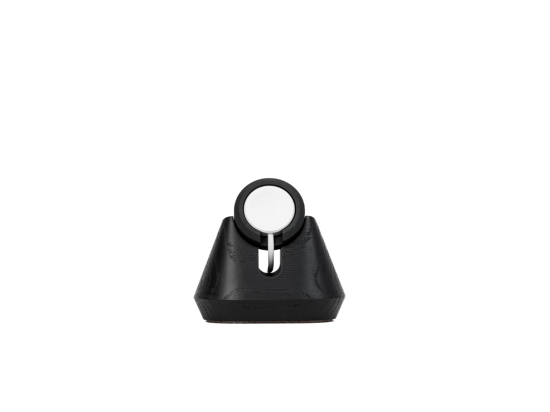 Ein Holzfuß mit niedrigem Schwerpunkt sorgt für Stabilität und bietet optimalen Halt für die zu ladende Apple Watch.