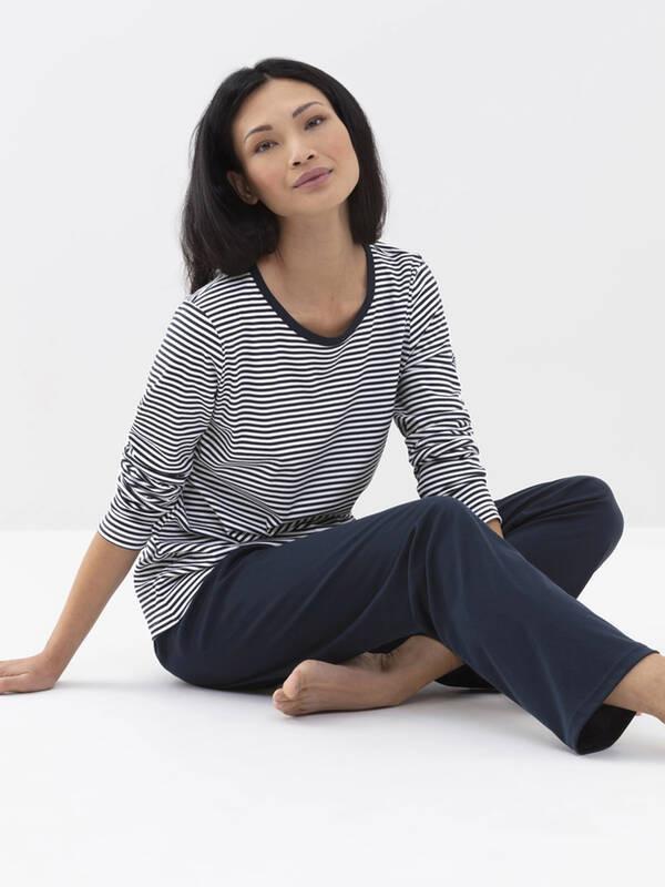 Das Paula Pyjama Set bietet Komfort und Stil für entspannte Stunden zu Hause. Das langärmelige Oberteil verfügt über einen bequemen Rundhalsausschnitt. Die passende Pyjamahose ist für eine legere Passform konzipiert und sorgt für Bewegungsfreiheit.