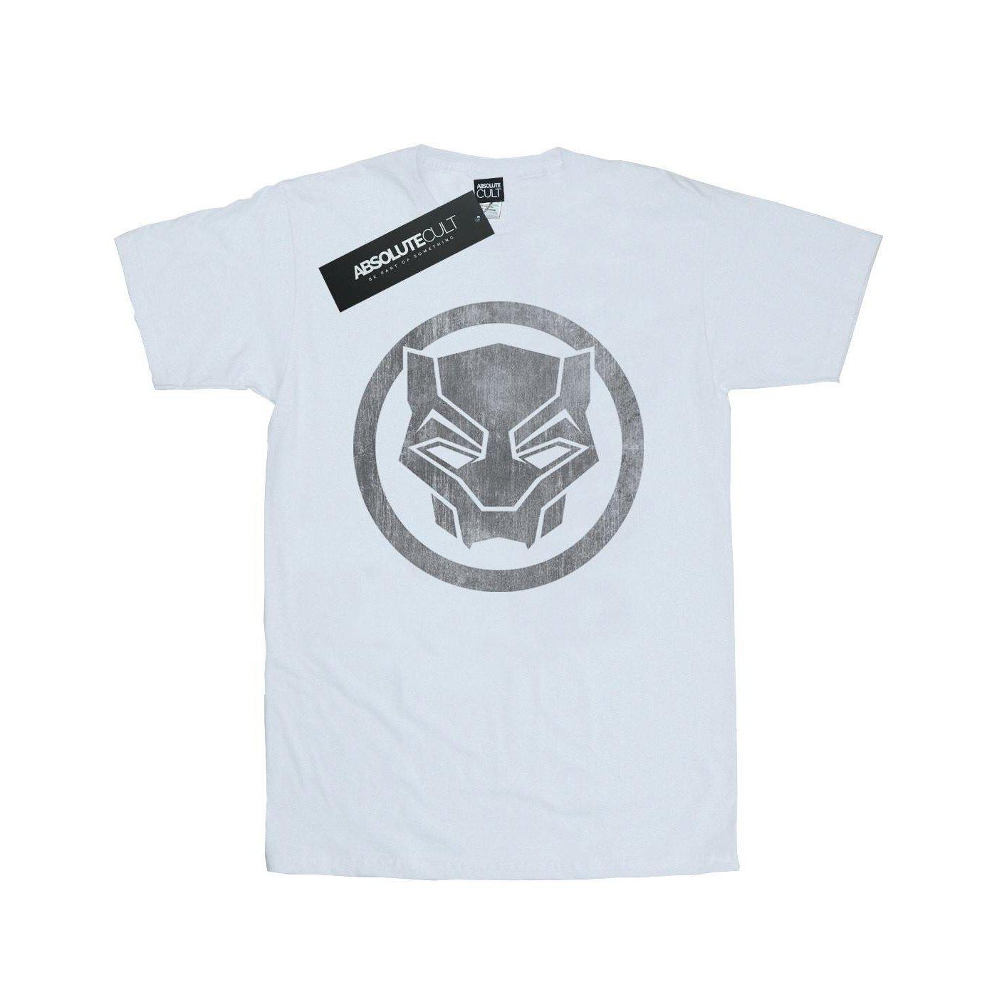 Dieses T-Shirt zeigt einen Used-Look-Druck der ikonischen Black Panther Maske in einem runden Design. Es ist ein klassisches Rundhals-T-Shirt mit kurzen Ärmeln, das Marvel-Superhelden-Fans einen bequemen und stilvollen Sitz bietet.