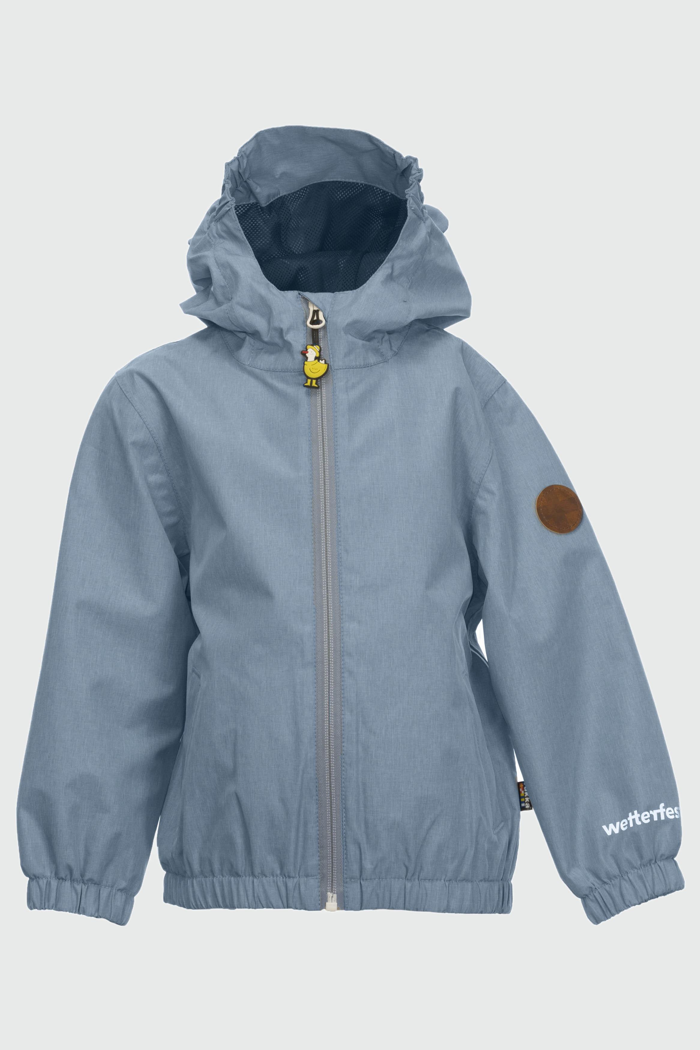 Diese Kinder-Regenjacke wurde entwickelt, um die Kleinen bei Outdoor-Abenteuern trocken und bequem zu halten. Sie verfügt über einen durchgehenden Reissverschluss und eine Kapuze für zusätzlichen Schutz vor den Elementen.