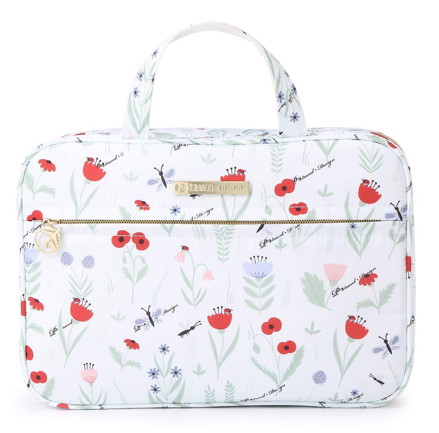 Dieser Kulturbeutel zum Aufhängen ist für Bequemlichkeit und Organisation konzipiert. Er verfügt über ein geräumiges Inneres, um alle wichtigen Dinge aufzubewahren, und eine wasserdichte Konstruktion, um den Inhalt zu schützen. Die Tasche ist mit einem charmanten Blumen- und Insektenmuster verziert, das Reiseaccessoires einen stilvollen Touch verleiht.