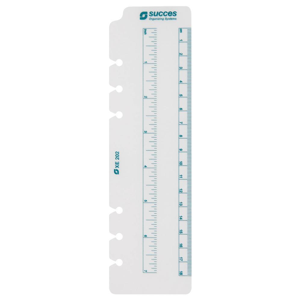 Der Succes Massstab, ein wichtiger Helfer aus dem breiten Zubehör-Sortiment für Ihr Ringbuch. Kunststoff, transparent. 6-Fach-Lochung für Blattgrösse 14,8 x 21 cm.
