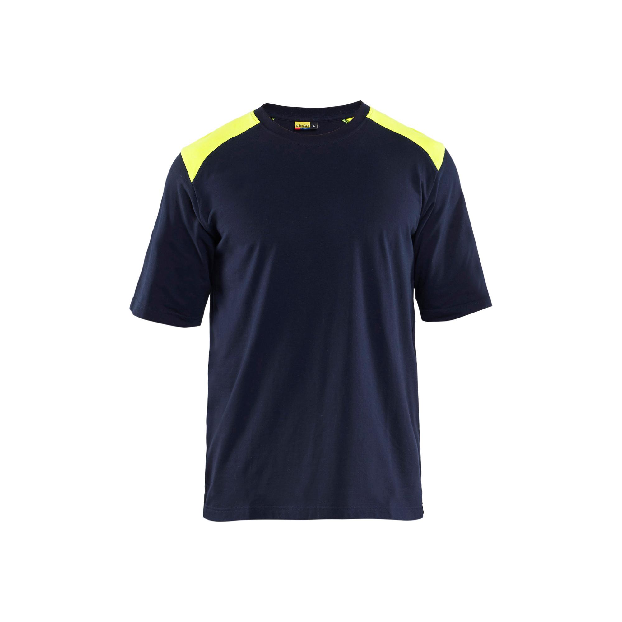 Das flammhemmende T-Shirt 3476 aus Jersey ist bequem, weich und verfügt über inhärente flammhemmende Eigenschaften. Die gelbe Farbe im Schulterbereich sorgt für eine bessere Sichtbarkeit. Es hat einen Rundhalsausschnitt und verstärkte Nähte am Halsausschnitt und an den Schultern. Zertifiziert nach EN 1149-5, EN ISO 14116.